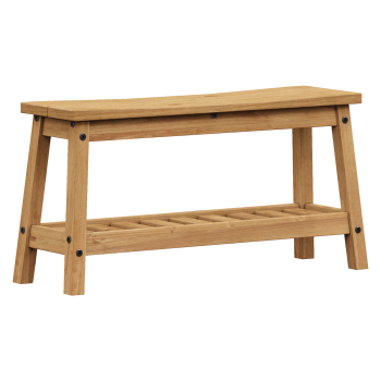 Kód produktu: 4463materiál masív borovica voskovaná v medovom odtieni 4 kovové háčiky, 4 otvorené police na topánky výška sedu lavice 45 cm súčasť zostavy Corona 2
