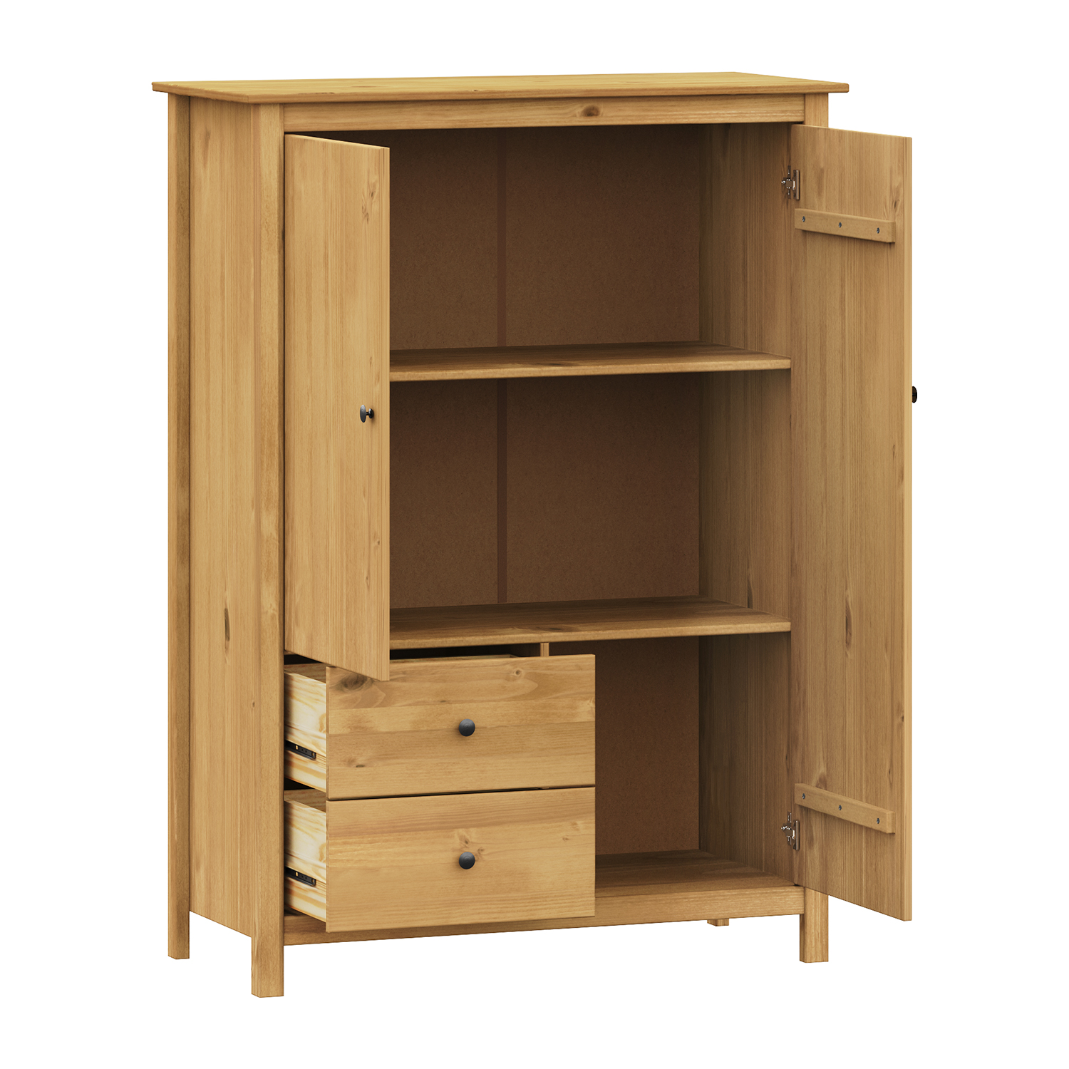 Kód produktu: 8091Vmateriál masív borovica voskovaná v medovom odtieni kovové úchytky vo farebnom prevedení černená mosadz 2 zásuvky s kovovými pojazdmi, 2 plné dvere, 1 polica vhodný doplnok nadstavec 8096V