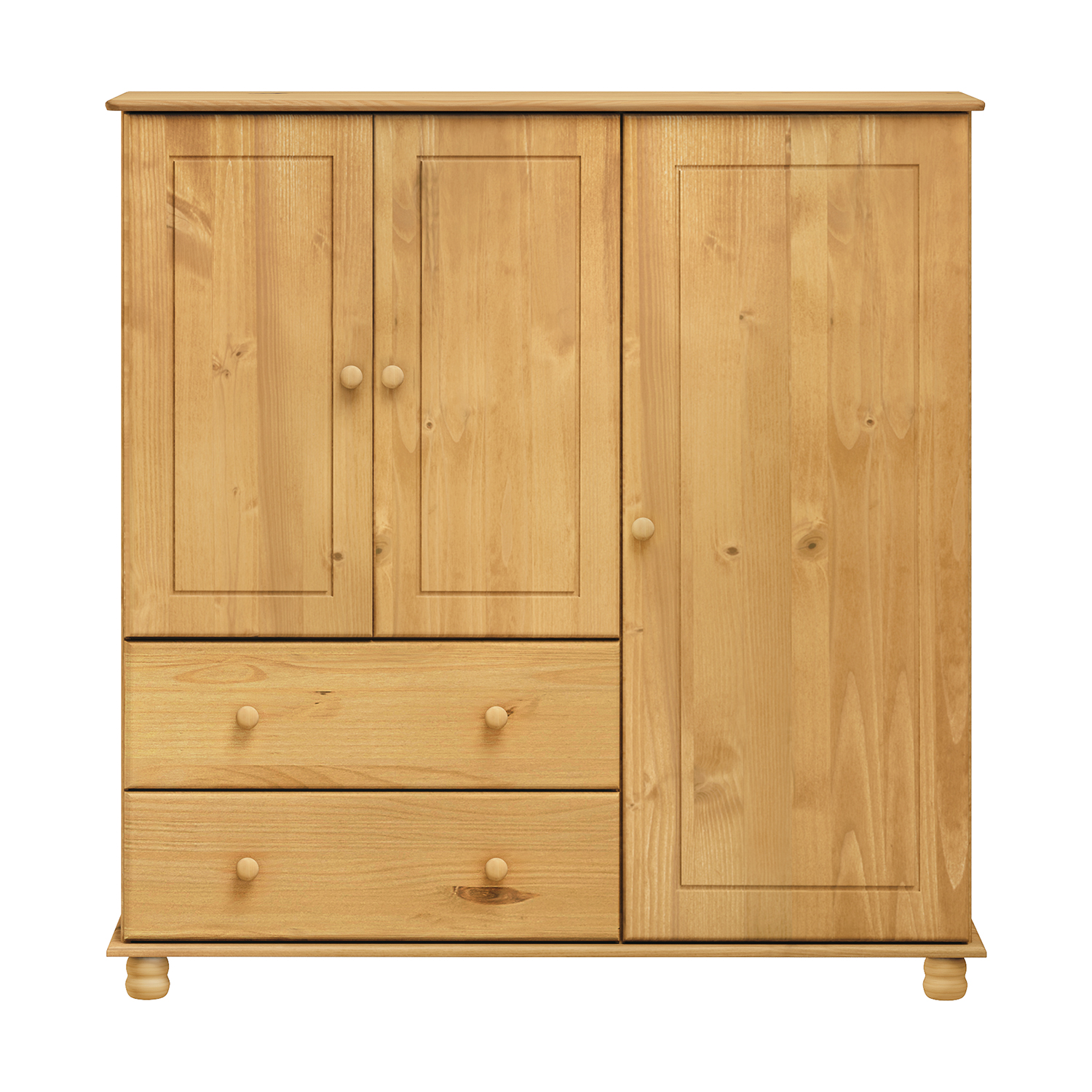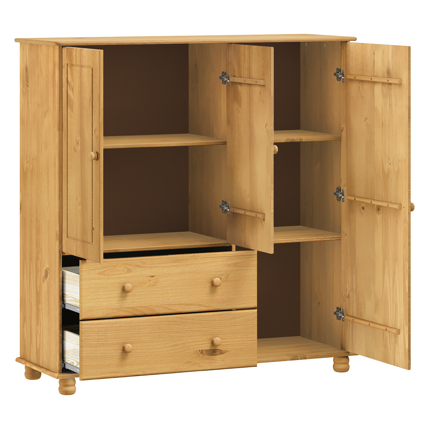 Kód produktu: 4Vmateriál masív borovica, voskované prevedenie jedny dvierka, jedna variabilná polica 4 široké zásuvky s kovovými pojazdmi, hĺbka zásuvky 33,5 cm
