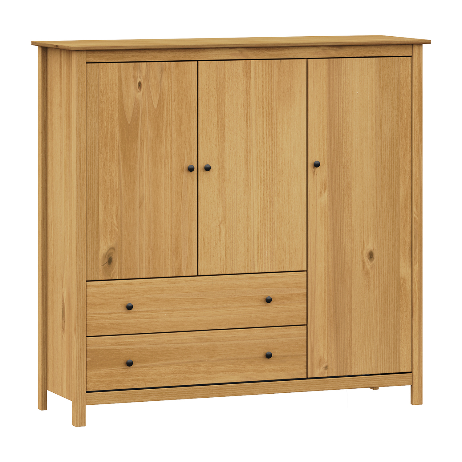 Kód produktu: 8061Vmateriál masív borovica voskovaná v medovom odtieni kovové úchytky vo farebnom prevedení černená mosadz 3 zásuvky s kovovými pojazdmi, 3 plné dvere, 2 police maximálne nosnosti uvedené v návode na montáž