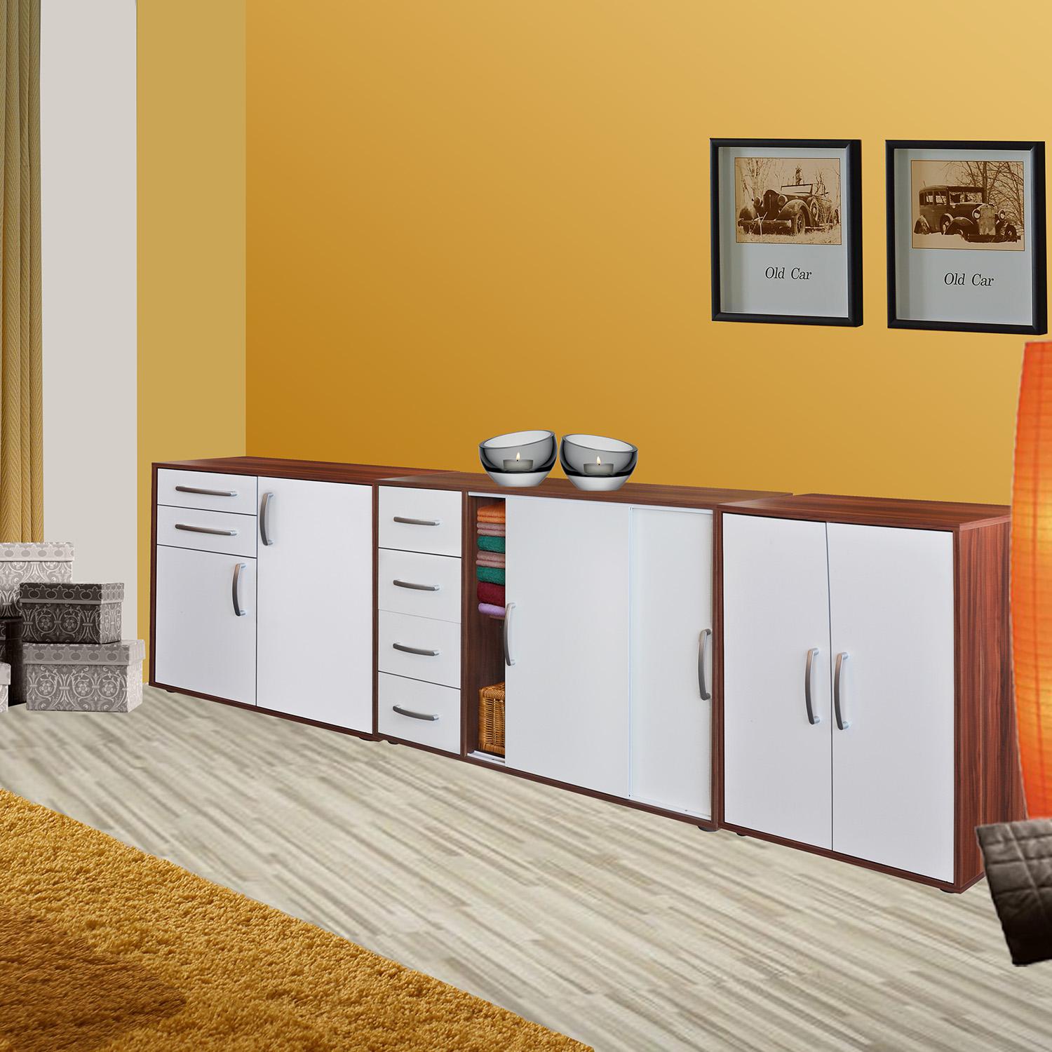 Vyriešte to jednoducho a postavte si do spálne, chodby, šatne či obývacej izby priestranný bielizník. Bielizník alebo ak chcete komoda je dnes úplnou samozrejmosťou v malých izbách, rovnako ako stôl v jedálni. Šikovne navrhnutý bielizník si budú pochvaľovať predovšetkým mamičky s malými deťmi či ženy s vášňou pre krásne oblečenie. Bielizník 61503 vo farebnom prevedení orech v kombinácii s bielou pojme všetky zvršky, uteráky, spodnú bielizeň aj iné nevyhnutnosti. Štyri zásuvky a priestor s posuvným dvierkami obsahujúci variabilnú policu zaiste plne využijete. A ak by kapacita tohto krásneho kúsku nábytku predsa len nestačila, možno túto komodu doplniť o ďalšie kúsky nábytku vo farebnom prevedení orech / biela a vytvoriť si tak celý rad úložného priestoru. Nechajte vaše steny dýchať a vybavte všetky izby namiesto vysokými skriňami týmito praktickými komodami. Priestor bude ihneď pôsobiť väčším dojmom a vám zostane miesto aj na dekorácie, obrázky a fotky.