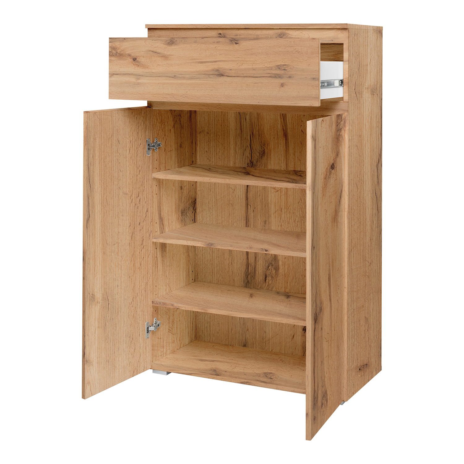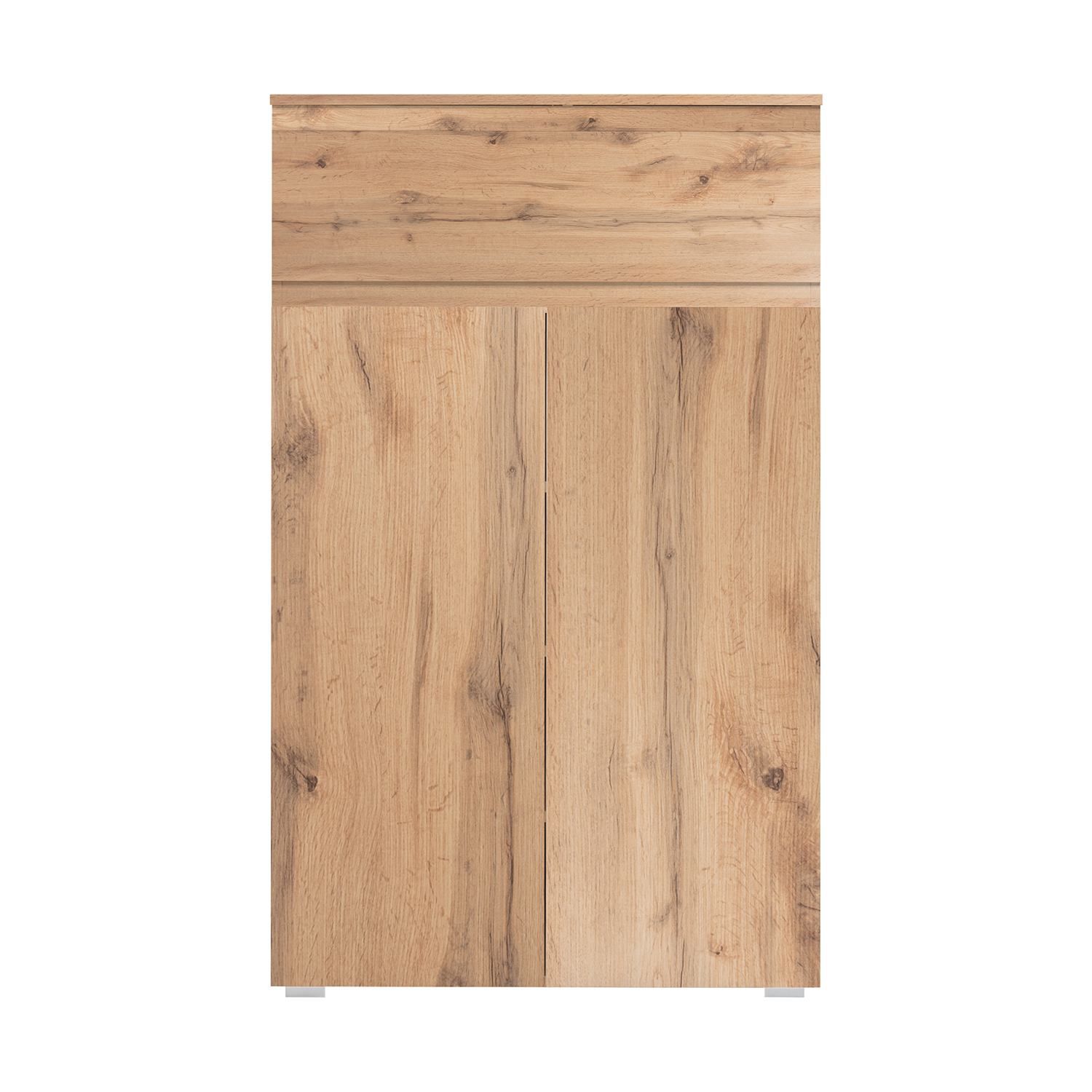 Moderný hladký botník IMAGE 3 je vhodný ako do menších bytov a garsónok, tak do priestrannej predsiene či chodby v obrovskom rodinnom dome. Botník vo farebnom prevedení zlatý dub je možné totiž umiestniť ako samostatne, tak po boku ďalšieho nábytku IMAGE. Botník má dvoje dvere, za ktorými sa nachádzajú tri variabilné police, uložíte tak do neho najrôznejšiu obuv. Vo vrchnej časti botníku sa navyše nachádza široká zásuvka na kľúče alebo doplnky. Na zaplnenú chodbu nie je pekný pohľad, vďaka jednoduchému hladkému botníku budete mať v predsieni vždy upratané. Nezanedbávajte prvú miestnosť, ktorú uvidia návštevy, predsieň musí byť na prvý pohľad príjemná. Vstup do vášho domova musí byť vždy uprataný, a to vďaka praktickému botníku bude, starosti všedného dňa potom necháte za vstupnými dverami.