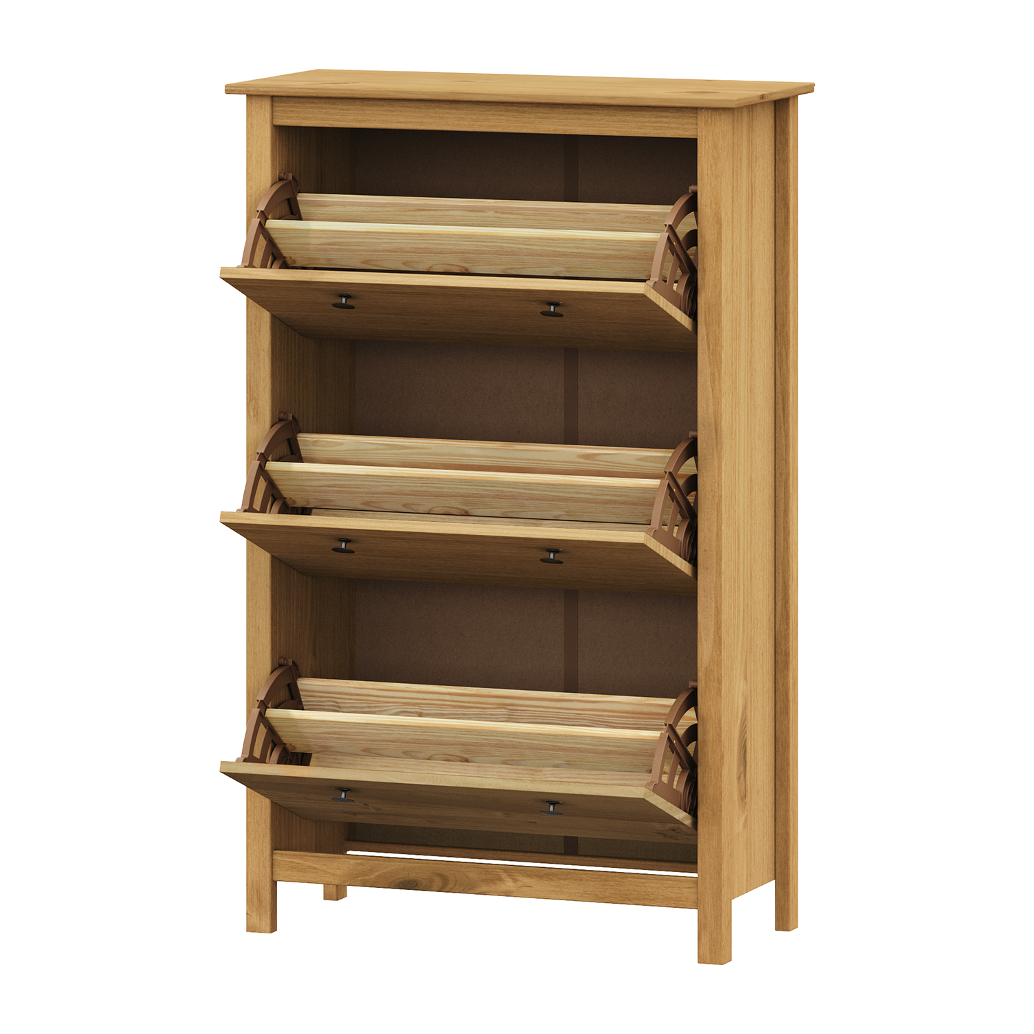 Botník TORINO vosk je ideálnym riešením pre všetkých, ktorí chcú spojiť praktickosť s prírodným vzhľadom a útulnou atmosférou domova. Je vyrobený z kvalitného masívu borovica, ktorý sa vyznačuje pevnosťou, odolnosťou a krásnou kresbou dreva. Povrchová úprava voskom zvýrazňuje prirodzenú štruktúru materiálu a dodáva mu teplý medový odtieň. Vďaka tomu pôsobí botník veľmi prirodzene a harmonicky zapadne do každého interiéru, či už je ladený do rustikálneho, vidieckeho alebo moderného štýlu. Botník TORINO vosk ponúka dostatok priestoru na uloženie obuvi aj ďalších drobností, ktoré chcete mať v predsieni prehľadne usporiadané. Praktická horná doska môže slúžiť ako plocha na odkladanie tašiek a doplnkov. Vnútri sa nachádzajú police, ktoré pomáhajú udržať poriadok a ľahký prístup ku každému páru topánok. Vďaka pevnému spracovaniu a stabilnej konštrukcii sa môžete spoľahnúť, že botník obstojí aj pri každodennom používaní. Voskovaný povrch pridáva nábytku na elegancii a zároveň ho chráni pred poškodením. Kovové úchytky dodávajú botníku jemný nádych tradície a dopĺňajú jeho prirodzený vzhľad. Tento kúsok dokáže z každej predsiene vytvoriť priestor, ktorý pôsobí upratané, teplo a prívetivo. Botník TORINO vosk nie je len úložným priestorom, ale aj štýlovým doplnkom, ktorý do vášho domova vnesie kúsok prírody a poctivého remesla.