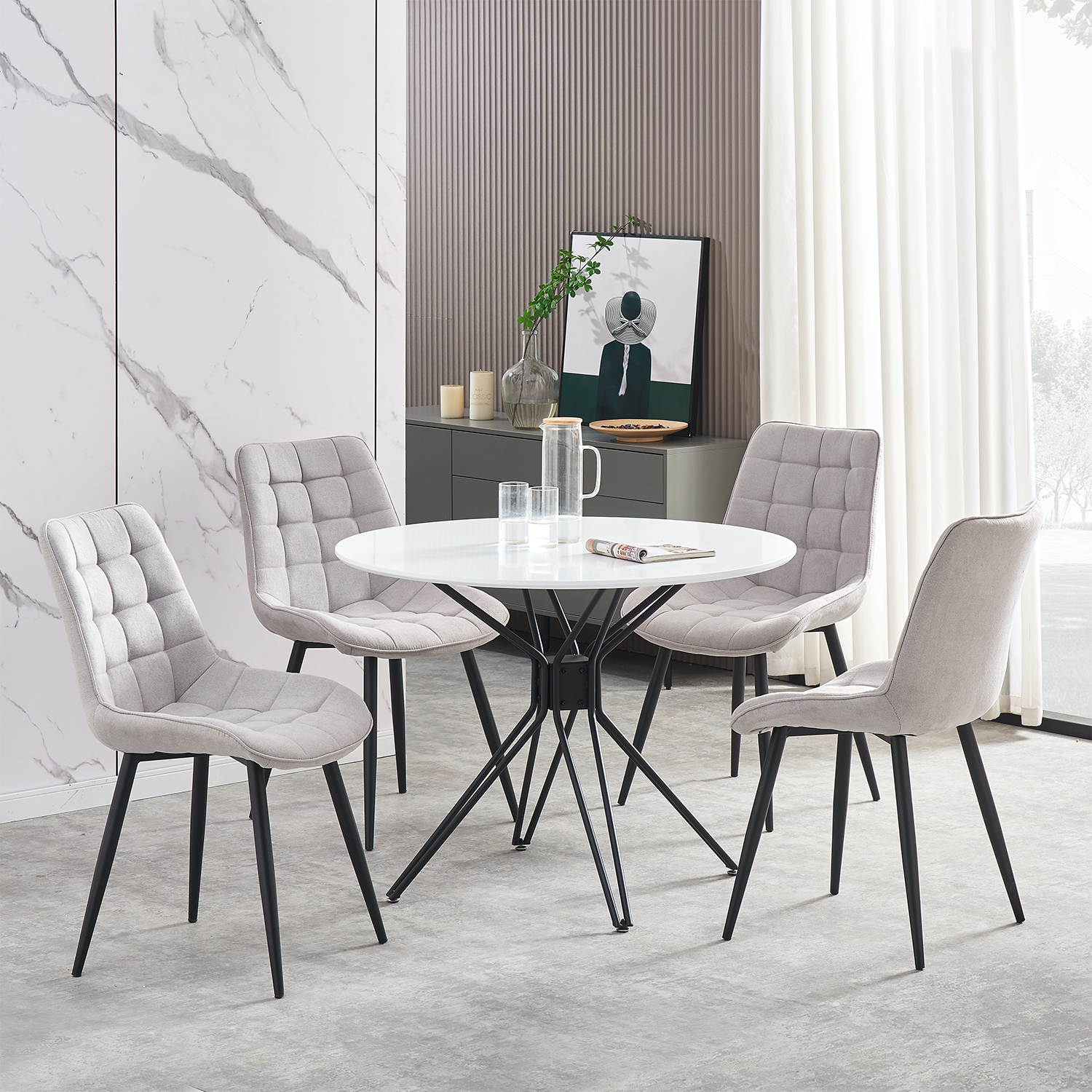 Predstavujeme vám jedálenskú stoličku MARGARITA vo svetlo sivom prevedení, ktorá dodá vašej jedálni či kuchyni moderný a sofistikovaný vzhľad. Táto stolička kombinuje štýlový dizajn s vysokým komfortom, čo z nej robí ideálnu voľbu pre každodenné stolovanie aj špeciálne príležitosti. Sedák a operadlo sú potiahnuté kvalitnou textíliou vo svetlo sivej farbe, ktorá je nielen príjemná na dotyk, ale aj odolná voči opotrebovaniu. Tento neutrálny odtieň ľahko zapadne do rôznych interiérov a dodá im svieži nádych. Pevná kovová konštrukcia v čiernom prevedení poskytuje stabilnú oporu a zároveň vytvára atraktívny kontrast so svetlo sivým poťahom. Vďaka výške sedu 49 cm a odporúčanej nosnosti až 130 kg je stolička vhodná pre širokú škálu užívateľov. S rozmermi 53 × 44 × 88 cm (š × h × v) ponúka stolička MARGARITA dostatok priestoru pre pohodlné sedenie bez toho, aby zbytočne zaberala miesto. Jej hmotnosť 6 kg umožňuje ľahkú manipuláciu a premiestnenie podľa potreby.