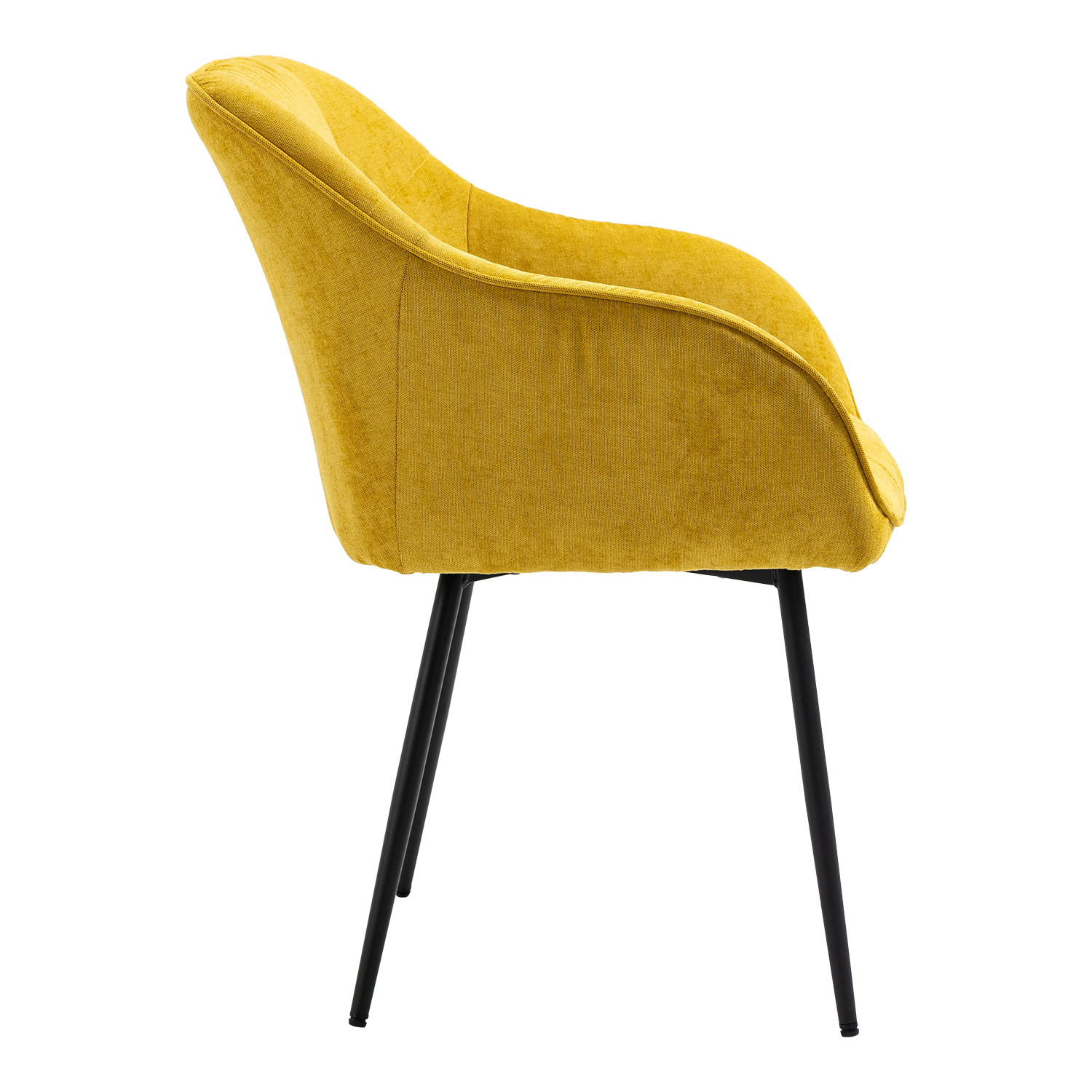 Jedálenská stolička MOSUN v žltom prevedení predstavuje spojenie moderného dizajnu a komfortu, ktoré oživí každý interiér. Jej textilný poťah v žiarivo žltej farbe dodáva priestoru sviežosť a energiu, zatiaľ čo čierna kovová konštrukcia zaisťuje stabilitu a odolnosť. S rozmermi 57 × 61 × 81 cm a výškou sedu 48 cm poskytuje pohodlné sedenie na každodenné stolovanie. Odporúčaná nosnosť stoličky je do 120 kg, čo svedčí o jej robustnosti a kvalitnom spracovaní. Ergonomický tvar sedadla a operadla podporuje správne držanie tela, čím prispieva k pohodliu aj pri dlhšom sedení. Stolička MOSUN je ideálnou voľbou pre tých, ktorí chcú do svojho domova vniesť farebný akcent a súčasne ocenia praktické vlastnosti nábytku. Vďaka svojmu univerzálnemu dizajnu sa ľahko kombinuje s rôznymi štýlmi interiérov, od moderných po klasické.