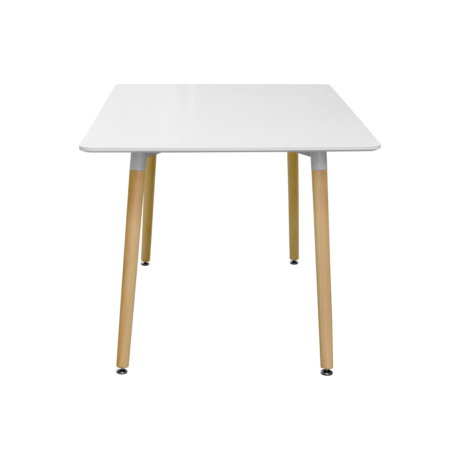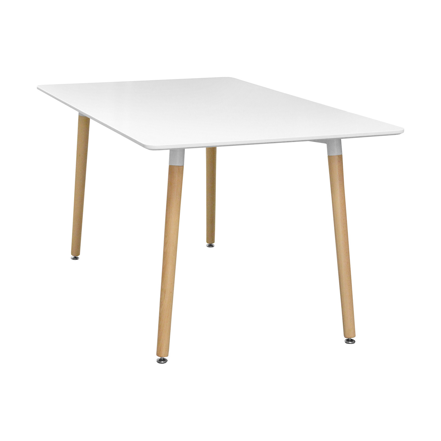 Jedálenský stôl 140 × 90 cm UNO biely s doskou v prevedení MDF má kovovú konštrukciu a okrúhle nohy. Pevné nohy v prevedení masív buk majú nastaviteľné plastové klzáky s pochrómovanou krytkou. Zvolajte priateľov k prestretému jedálenskému stolu UNO. Či už ho doplníte akýmikoľvek stoličkami, bude posedenie pri hladkom bielom stole vždy príjemné.
