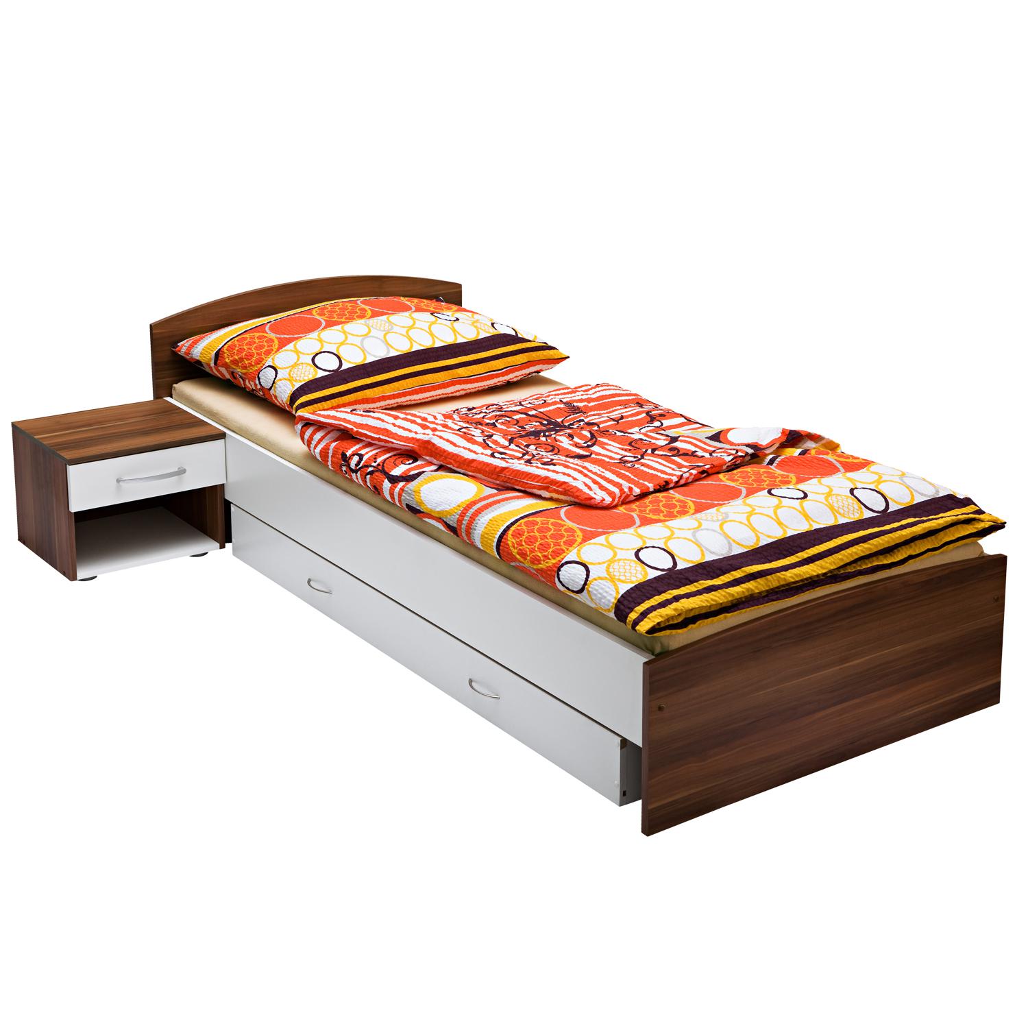 Tmavo hnedá farba v kombinácii s bielou je osvedčenou klasikou, ktorá sa vám na vašom nábytku len tak neopozerá. Praktické jednolôžko je potom vhodné ako do detskej izby, tak spálne jednočlennej domácnosti. Jednolôžko vo farebnej kombinácii orech a biela krásne ozdobí aj študentský byt či hotelovú izbu. Jednolôžko 60343 má zaoblené čelo a voľný priestor pod posteľou je možné nechať dýchať alebo ho zaplniť praktickým úložným priestorom. Pohodlné lôžko bude vyzerať veľmi dobre v akejkoľvek izbe, je možné ho kombinovať s nábytkom v rovnakom farebnom prevedení či iba farbe bielej alebo orech. Na pohodlnej posteli sa vám bude skvele odpočívať, voľba matraca a roštu je úplne na vás, zvolíte si totiž také, ktoré vám budú úplne vyhovovať. Izba vybavená nábytkom v kombinácii orech a biela vás bude baviť, môžete mu totiž dať vzhľad presne podľa svojho gusta, v našej ponuke totiž nájdete jednotlivé kúsky nábytku, ktoré s trochou predstavivosti a usilovnosti budú vyzerať v izbe úplne dokonale.
