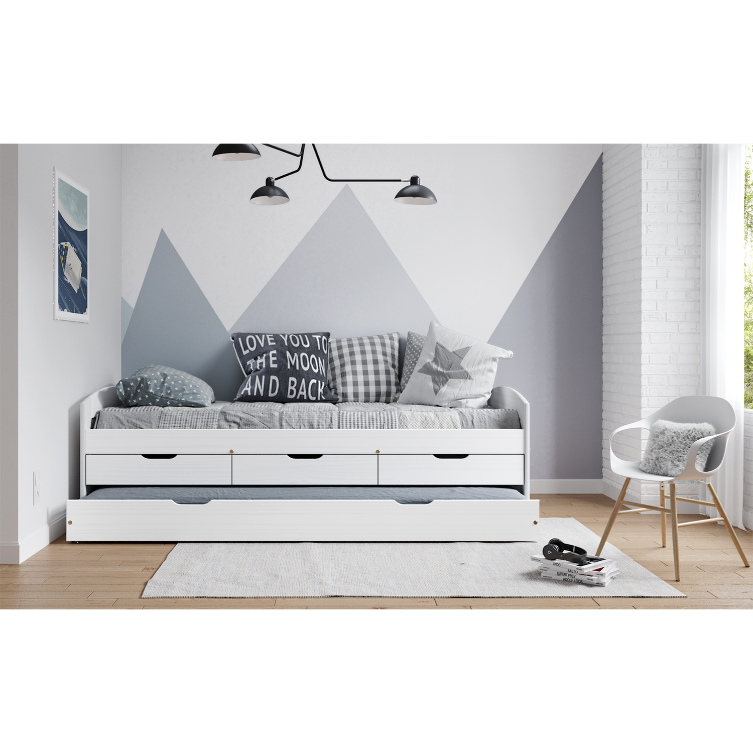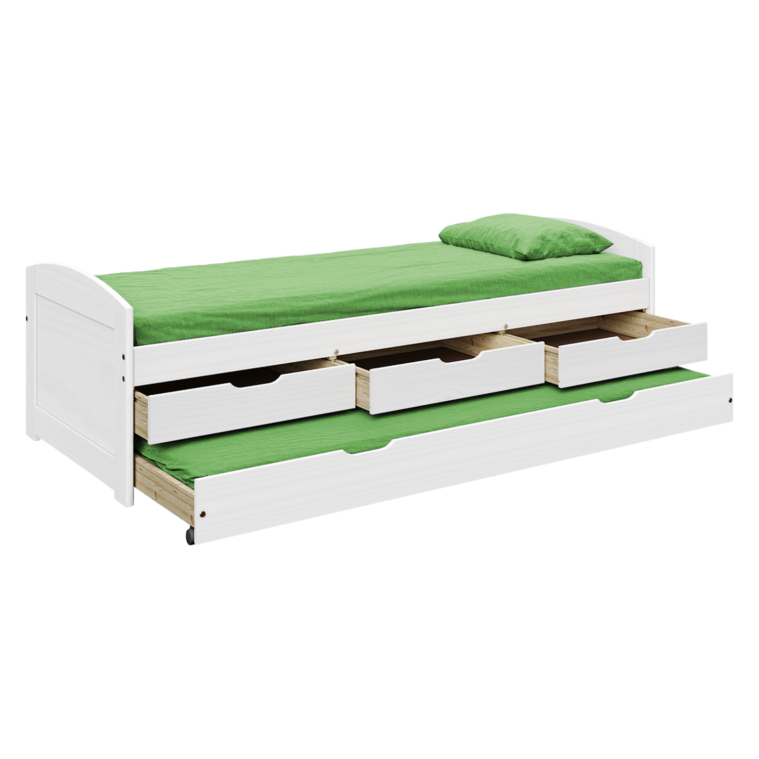 Jedine to, ktoré sa dá v prípade potreby rozložiť a ktoré navyše disponuje aj priestorom na uloženie vecí. Jednolôžko MARINELLA v prevedení masív borovica je nielen kvalitným a pohodlným lôžkom, ale spĺňa aj oba predchádzajúce body, a to úložný priestor aj praktickú prístelku. Život študentov býva hektický, takže potrebujú ako plnohodnotný spánok, tak vždy po ruke dôležitá skriptá či zošity. Opakovanie naučenej látky pred spaním je na nezaplatenie, často je tak na túto činnosť využívaná práve pohodlná posteľ. Tri malé zásuvky, ktoré sú súčasťou lôžka, poslúžia na uloženie skrípt, ale aj knižiek či iných drobností. Zásuvky uprostred lôžka plne nahradia nočný stolík. Všetci potrebujeme svoj osobný priestor, a to aj keď izbu zdieľame s ďalšími osobami. Týmto priestorom býva najčastejšie práve lôžko. Súčasťou študentského života však nie je iba práca, ale aj zábava, ponúknite pohodné prespanie kamarátovi z druhého konca mesta. Stačí iba vysunúť široký výsuv, ktorý predtým zaobstaráte matracom a uložiť návštevu k spánku. Vďaka tejto jedinečnej možnosti je práve toto lôžko využívané aj v hosťovských izbách, uložíte totiž hneď dvoch unavených kamarátov a lôžko vám v izbe nezaberie toľko miesta. Do výsuvu nemusíte nutne kupovať matrac, ale je možné ho tiež využiť na uloženie periny a vankúša. Na študentský život budete radi spomínať, doprajte si teda kvalitný spánok ešte dnes, táto posteľ je skvelou voľbou.