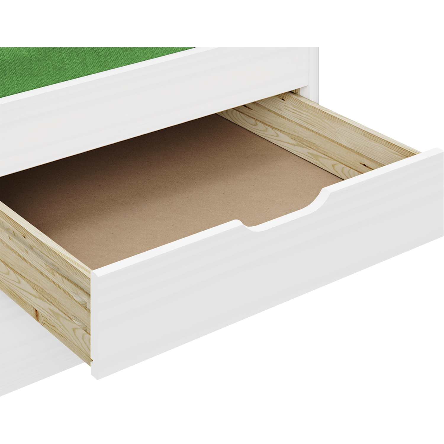 model ULLI, výška sedu 52 cm, praktické úložné priestory pod posteľou (3 zásuvky a výsuv) sú v cene