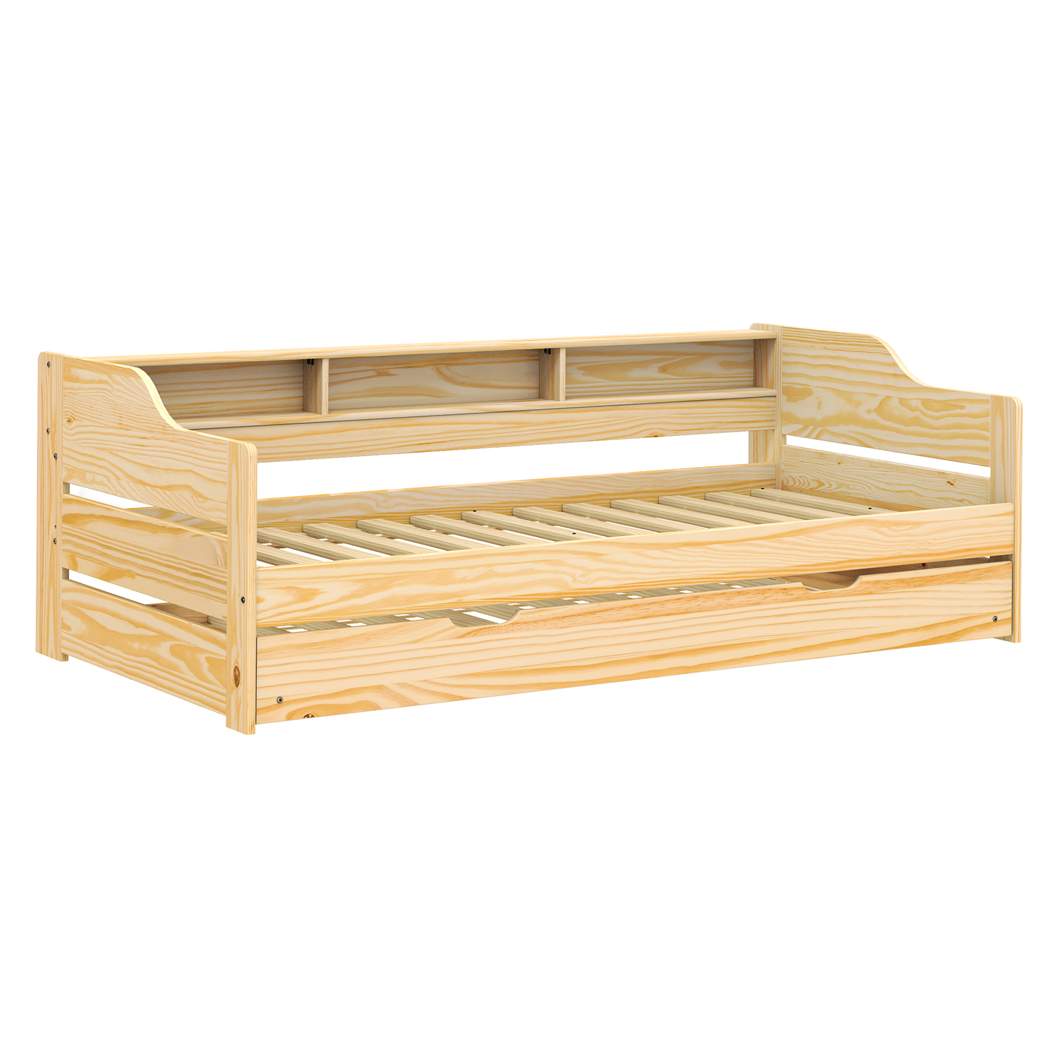 Jednolôžko LILI s lakovaným povrchom je ideálnou voľbou do detskej izby, hosťovskej izby alebo menšej spálne. Vyrobené je z masívu, čo zaručuje pevnosť, stabilitu a dlhú životnosť. Lak chráni povrch dreva a zároveň zvýrazňuje jeho prirodzenú kresbu. Vďaka tejto úprave sa posteľ ľahko udržuje a dobre vyzerá aj pri každodennom používaní. Najväčšou výhodou tohto lôžka je výsuvná časť, ktorá slúži ako prístelka. Je to praktické riešenie pre prípady, keď potrebujete rýchlo a jednoducho vytvoriť druhé plnohodnotné lôžko. Prístelka sa ľahko vysunie a ponúka pohodlné spanie bez nutnosti zložitej prípravy. Po použití ju jednoducho zasuniete späť, takže nezaberá zbytočne miesto. Celkové prevedenie pôsobí čisto a nadčasovo. Jednoduchý tvar a prirodzený vzhľad dreva umožňujú ľahké zladenie s ostatným nábytkom v miestnosti. Konštrukcia je stabilná a pripravená na pravidelné používanie. Jednolôžko LILI ponúka nielen pohodlné spanie, ale aj praktické riešenie pre viac osôb v jednom priestore. Spája funkčnosť, kvalitný materiál a poctivé spracovanie. Je to spoľahlivý kus nábytku, ktorý v domácnosti skutočne využijete.