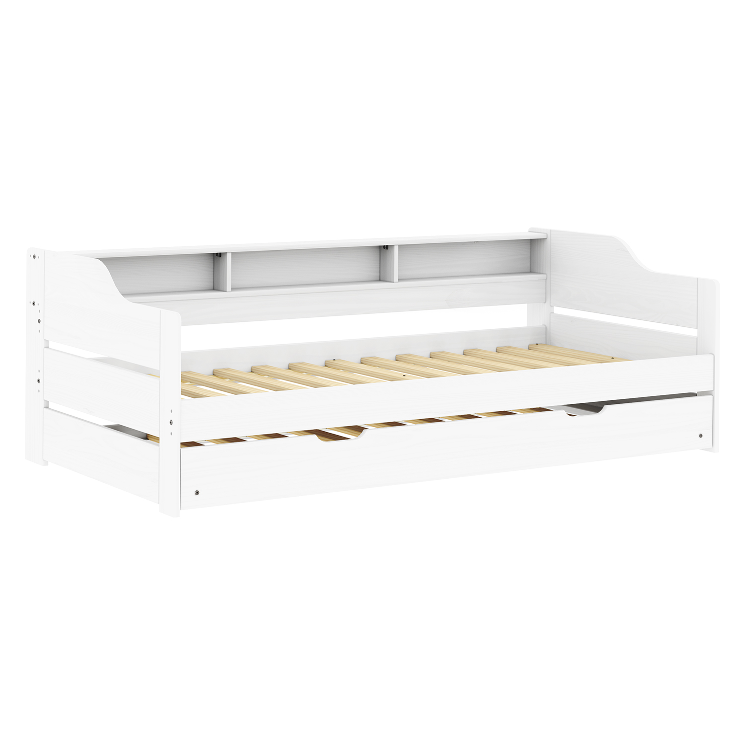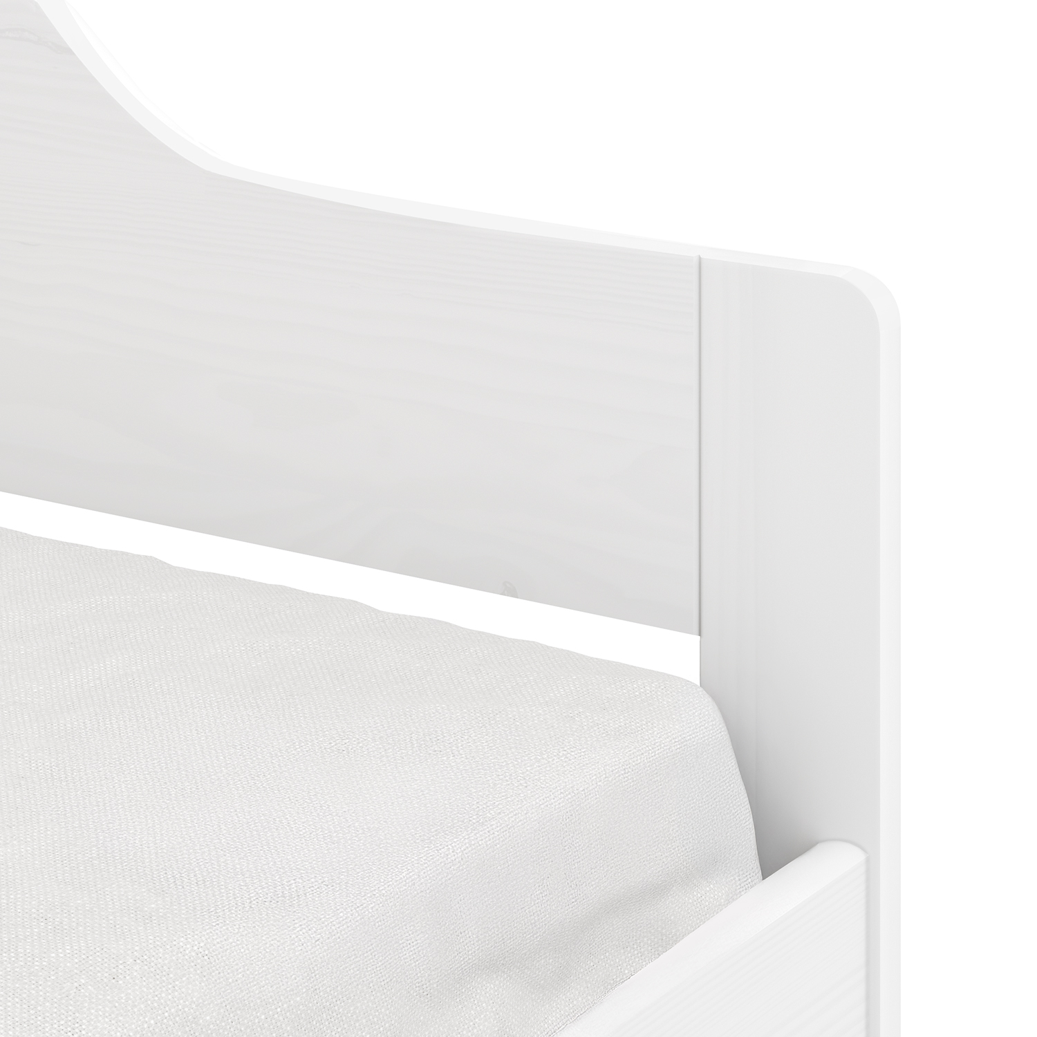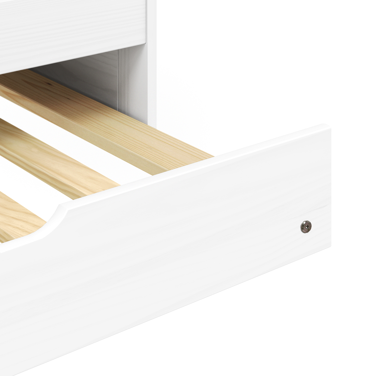 Jednolôžko LILI v bielom laku pôsobí sviežo a elegantne, zároveň si zachováva svoju praktickosť. Je vyrobené z masívu borovice, čo mu dodáva vysokú pevnosť a dlhú životnosť. Lakovaný povrch nielen zvýrazňuje prirodzenú štruktúru dreva, ale taktiež chráni materiál pred poškodením a uľahčuje jeho údržbu. Súčasťou konštrukcie je praktická vysúvacia časť, ktorá slúži ako prístelka. Vďaka tomu je možné z postele ľahko vytvoriť ďalšie lôžko pre hostí alebo rodinné návštevy bez toho, aby bolo potrebné zložité prípravy. Vysúvacia časť je navrhnutá tak, aby sa s ňou dalo manipulovať bez námahy a zároveň pevne držala na mieste, keď nie je používaná. K posteli sú dodávané kvalitné latkové rošty, ktoré poskytujú stabilnú podporu matracom a prispievajú k pohodlnému spánku. Matrace nie sú súčasťou, takže si môžete vybrať presne také, ktoré vyhovujú vašim potrebám. Jednoduchý dizajn postele umožňuje jej ľahké začlenenie do rôznych interiérov, či už v modernom, škandinávskom alebo klasickom štýle. Biela farba opticky presvetľuje miestnosť a dodáva jej pocit čistoty a kľudu. V kombinácii s prírodným vzhľadom dreva vytvára príjemnú atmosféru na odpočinok. Jednolôžko LILI v bielom laku je skvelou voľbou pre tých, ktorí hľadajú spojenie estetiky, praktickosti a odolnosti v jednom kuse nábytku.