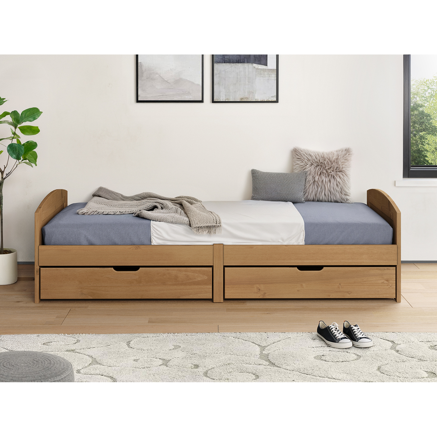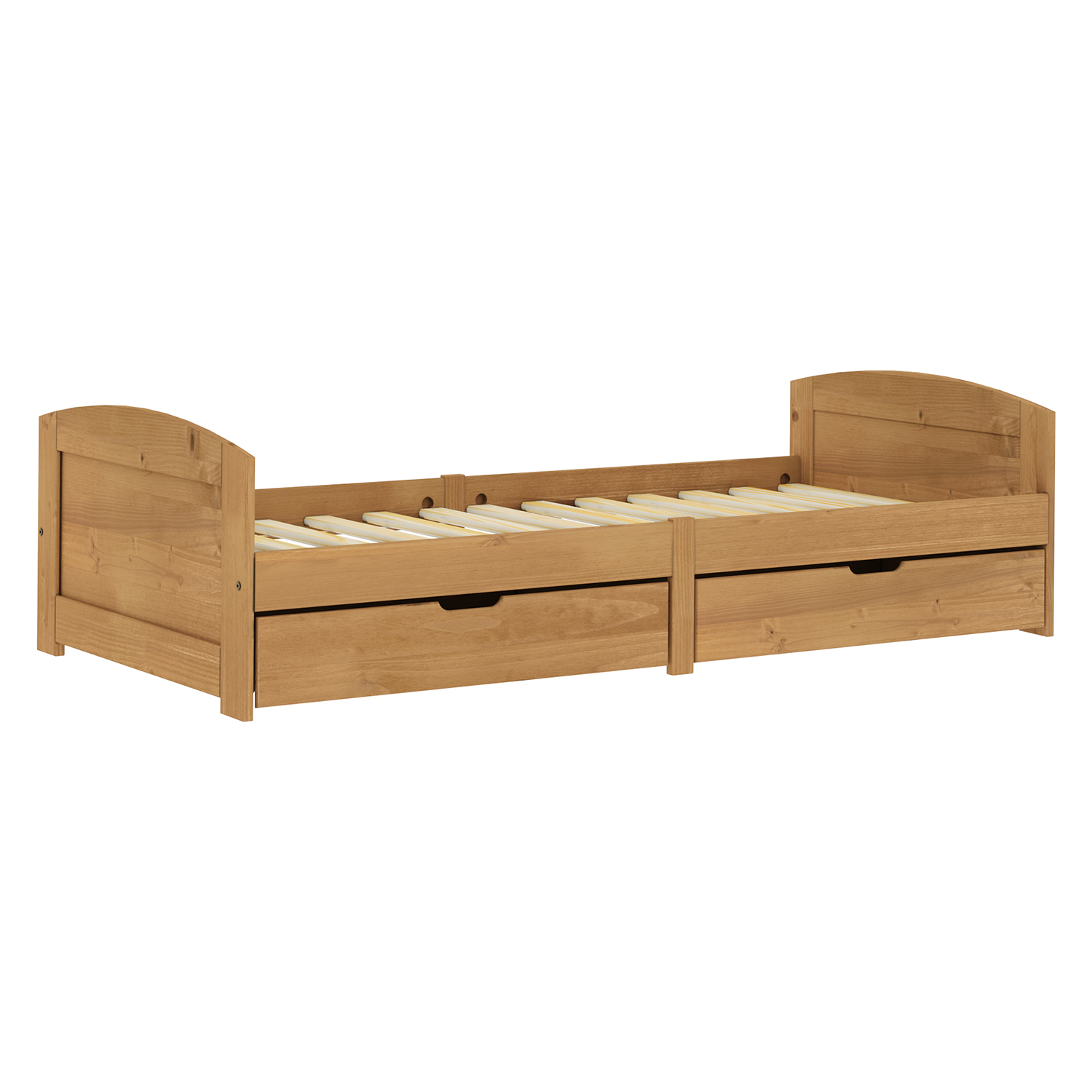 Jednolôžko MARIA z masívu borovice s voskovaným povrchom prináša čistý dizajn, praktickú funkčnosť a hrejivý prírodný vzhľad do každej spálne alebo detskej izby. Svojím jednoduchým štýlom nepôsobí zbytočne, napriek tomu si vás získa kvalitou a premyslenosťou. Voskovaná úprava zvýrazňuje jemné štruktúry dreva a dáva posteli autentický vzhľad bez nutnosti použitia zložitých efektov. Tento povrch zároveň chráni materiál a uľahčuje údržbu, takže bude nábytok aj po rokoch vyzerať stále pekne. Konštrukcia z masívu vyžaruje stabilitu, pevnosť a dlhodobú životnosť. Praktický prvok v podobe dvoch pojazdných zásuviek na kolieskach, ktoré sú súčasťou balenia, ponúkne cenný odkladací priestor. Ľahko sa vysúvajú, čo oceníte pri každodennom využívaní a navyše vám ušetria miesto, pretože nepotrebujete ďalšiu komodu alebo truhlu. Súčasťou postele je aj kvalitný latkový rošt, vďaka ktorému máte už od základu zaistenú pevnú oporu matraca. Vďaka tomu sa posteľ veľmi dobre prispôsobí individuálnym potrebám spania, pritom matrac si môžete vybrať podľa seba. Matrac nie je súčasťou balenia, čo dáva voľnosť pri jeho výbere. Posteľ MARIA je poctivý kus nábytku, ktorý vyzerá nenápadne, ale keď ju raz využijete, hneď si všimnete, aká je premyslená. Kombinuje praktickosť, prírodný vzhľad a trvanlivosť bez zbytočnej prehršle dekorácií. Je to kus, čo dáva zmysel a dokáže spríjemniť každodenný odpočinok aj uľahčiť udržiavanie poriadku.