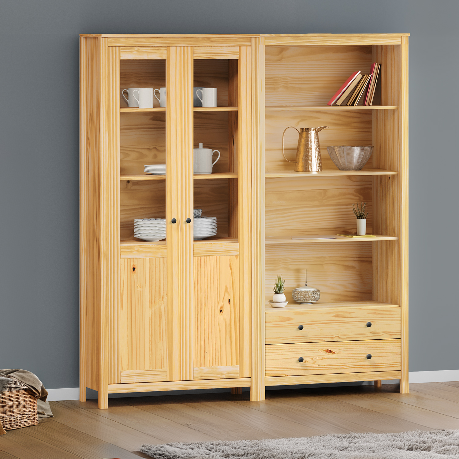 Knižnica TORINO zaujme na prvý pohľad svojou jednoduchou a pritom dômyselnou konštrukciou. Je vyrobená z masívu borovica a jej povrch je lakovaný, čo zdôrazňuje prirodzenú kresbu dreva a dodáva celej knižnici príjemne teplý vzhľad. Tento kus nábytku pôsobí pevne, stabilne a zároveň veľmi vzdušne. Hodí sa do klasického aj rustikálneho interiéru, ale nestratí sa ani v moderne ladenej domácnosti. Otvorené police poskytujú dostatok priestoru pre knihy, dekorácie, boxy alebo iné predmety, ktoré si zaslúžia byť na očiach. Dve praktické zásuvky v spodnej časti knižnice ponúkajú miesto pre drobnosti, ktoré potrebujete mať po ruke, ale nechcete ich vystavovať. Kovové úchytky vo farebnom prevedení černená mosadz dodávajú celému kusu jemný kontrast a vizuálny detail, ktorý podčiarkuje jeho charakter. Knižnica TORINO je ideálnou voľbou pre každého, kto hľadá funkčný, odolný a zároveň estetický kus nábytku. Skvele vynikne samostatne, ale ľahko ju zladíte aj s ďalšími prvkami z rovnakého radu. Vďaka kvalitnému spracovaniu vám bude slúžiť dlhé roky a zachová si svoj prírodný šarm aj pri každodennom používaní. Je to kus nábytku, ktorý v interiéri nepôsobí rušivo, ale pritom pritiahne pozornosť.