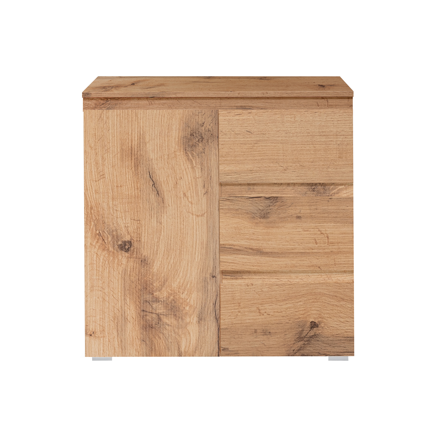 Priestor vašej prvej miestnosti by mal byť vybavený predovšetkým prakticky, pokiaľ je nábytok do predsiene navyše ešte pekný, potom je to veľké plus. Keď dorazíte domov z práce, potrebujete sa posadiť na pohodlnú stoličku, vyzuť obuv a vziať si prezuvky. Komoda 1 dvere + 3 zásuvky IMAGE 2 vo farebnom prevedení zlatý dub poslúži na uloženie drobných vecí, kľúčov, doplnkov či prezuvok v predsieni zariadenej nábytkom IMAGE. Moderná komoda nezaberie toľko priestoru, má jedny dvere za ktorými sa nachádza úložný priestor s jednou policou, ďalej obsahuje tri zásuvky s kovovými pojazdmi. Komoda IMAGE nájde svoje uplatnenie snáď v každej izbe, využijete ju v obývacej izbe na knihy a dokumenty či v spálni namiesto bielizníka. Hladká komoda bude vyzerať vždy krásne, a to predovšetkým po boku ostatného nábytku IMAGE. Na plochu komody je možné navyše vystaviť obľúbené dekorácie. Zabývajte ako prvú miestnosť, tak ostatné izby pekným nábytkom, priestor bude pôsobiť vždy luxusným dojmom.
