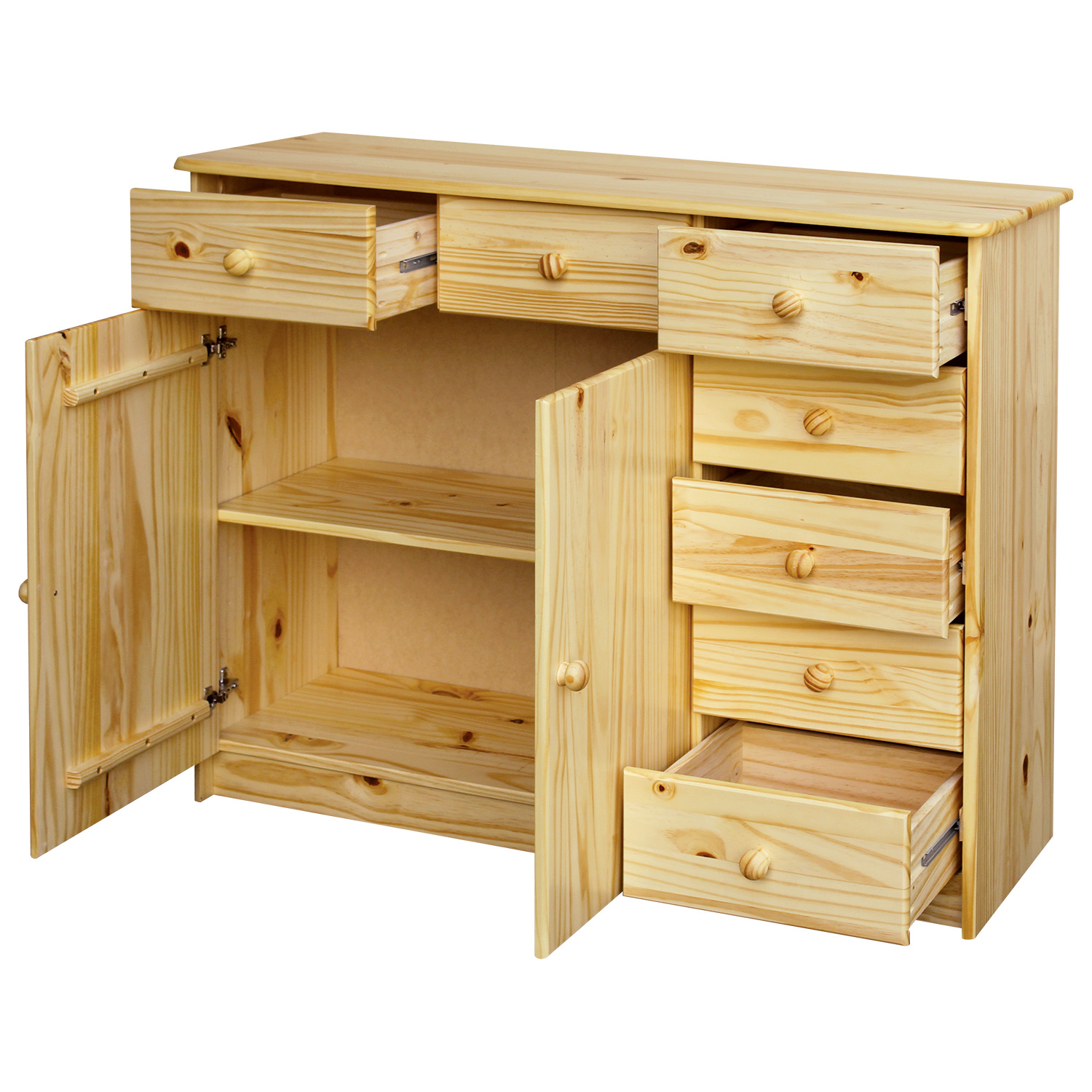 Predsa do komody, ktorá tieto veci prehľadne rozdelí do jednotlivých zásuviek, vždy tak budete mať o veciach prehľad a nič sa už nebude nachádzať mimo úložného priestoru. Komoda 10 je teda ideálnym riešením na uschovanie všetkých drobných vecí. Masívna komoda totiž obsahuje hneď sedem zásuviek s kovovými pojazdmi a navyše má aj úložný priestor s variabilnou policou nachádzajúcou sa za dvierkami. Komoda s krásnym dezénom dreva tak doplní vybavenie kancelárie či pracovne, umiestnite ju však aj do izby ako bielizník, či do kuchyne ako príborník. Užšia komoda však najlepšie zapadne do chodby a šatne, kde poslúži na kľúče a drobné doplnky. Komoda 10 si bude najlepšie rozumieť s ďalším masívnym nábytkom, predovšetkým ju umiestnite vedľa masívnej skrine, masívneho botníku, či po boku masívneho pracovného stola. Komoda 10 vám zaistí absolútny poriadok a poriadok vo vašich veciach.