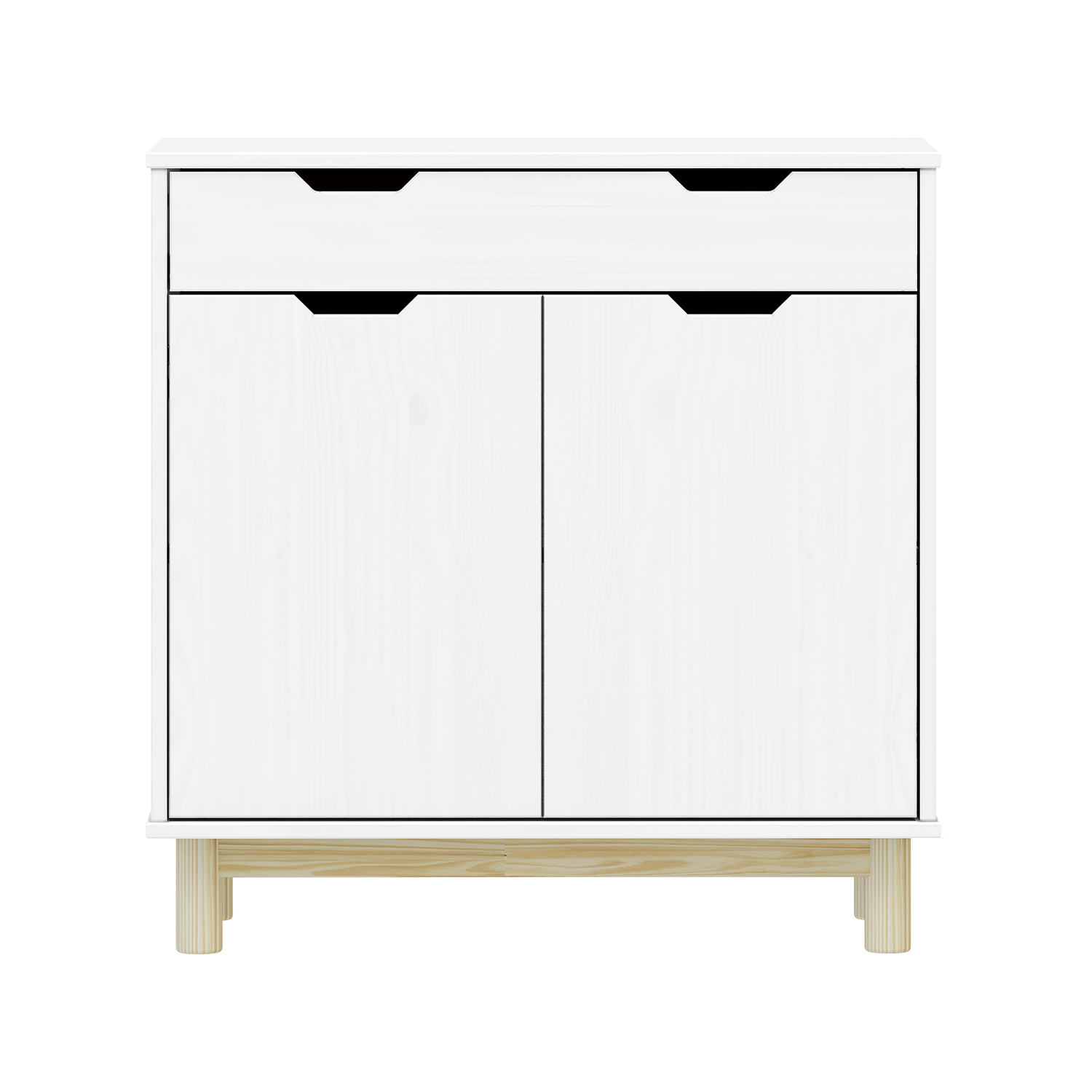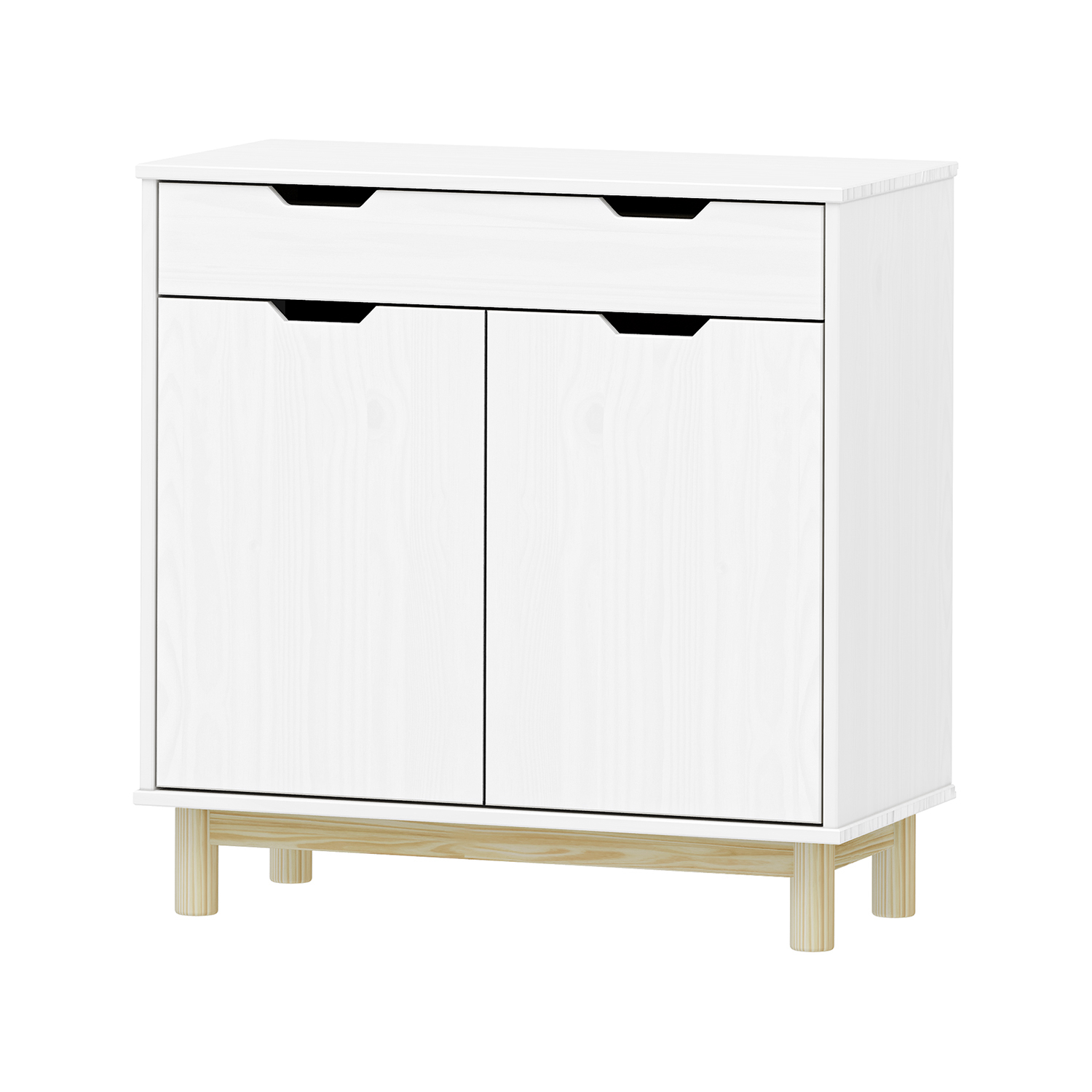 Kód produktu: 324343Vmateriál masív borovica, lakované prevedenie 1 zásuvka s kovovými pojazdmi, 2 dvierka, 1 polica