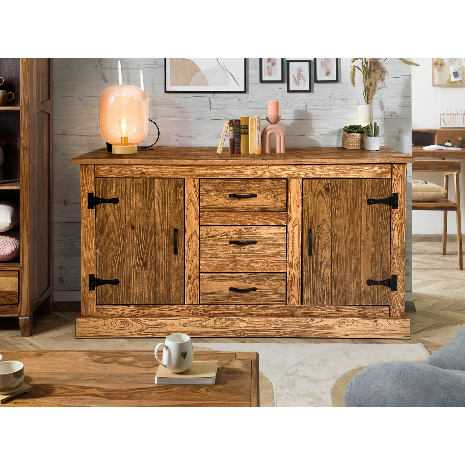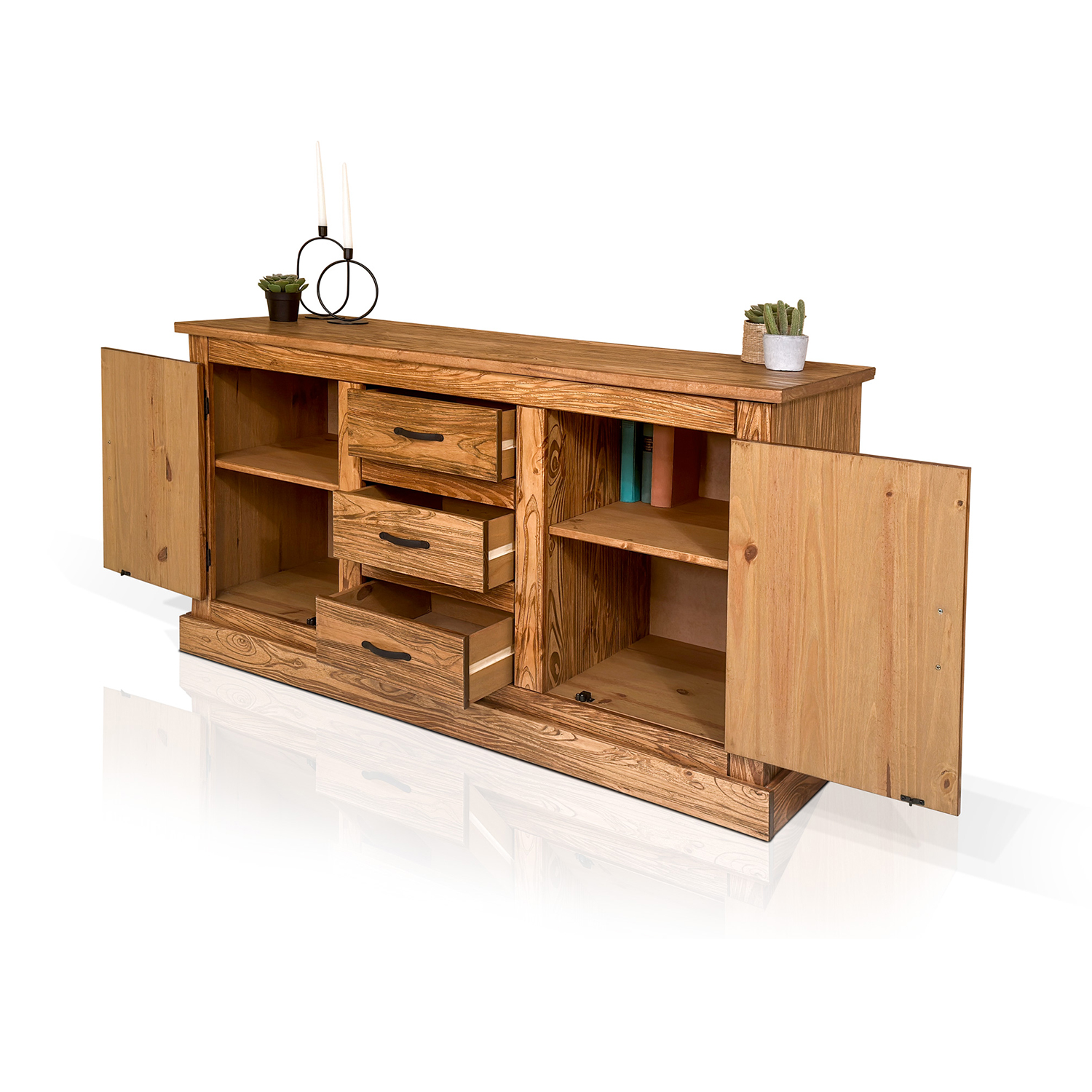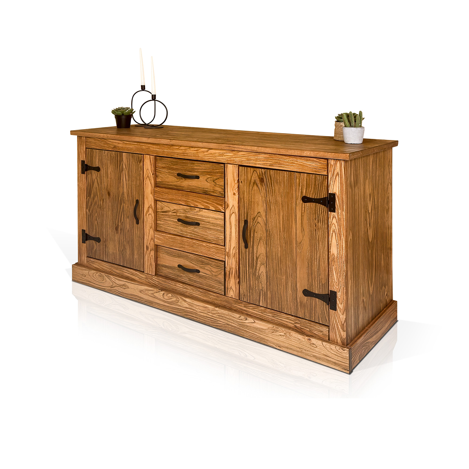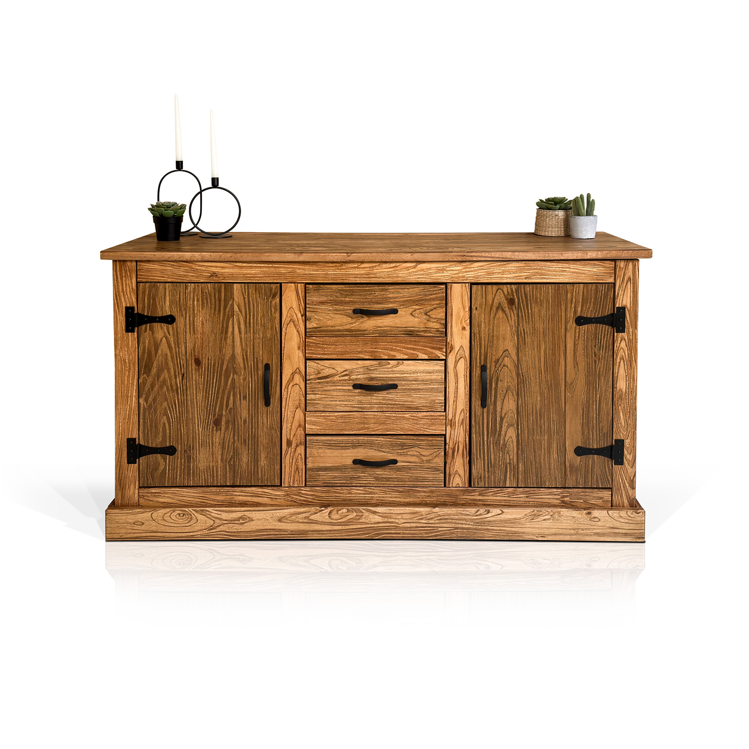 Obdivujete atypický nábytok, ale zároveň máte aj radi pevné kúsky? Tak to vás iste očarí komoda 2 dvere + 3 zásuvky EL DORADO vo farebnom prevedení dub antik, ktorá je už na prvý pohľad veľmi zaujímavá. Komoda je z masívneho borovicového dreva s plastickým vlisom drevenej štruktúry na povrchu. Komoda EL DORADO obsahuje dva úložné priestory, vo vnútri ktorých nájdete policu a sú opatrené dvierkami, uprostred komody sa potom nachádzajú tri zásuvky. Komoda EL DORADO urobí veľa parády predovšetkým v jedálni a obývačke, spolu s ostatným nábytkom EL DORADO vytvorí veľmi pekné prostredie. Komoda v prevedení dub antik je taktiež vhodným kúskom nábytku do priestorov zariadených v tomto štýle. Elegantný a napriek tomu hravý nábytok vás nikdy neomrzí.