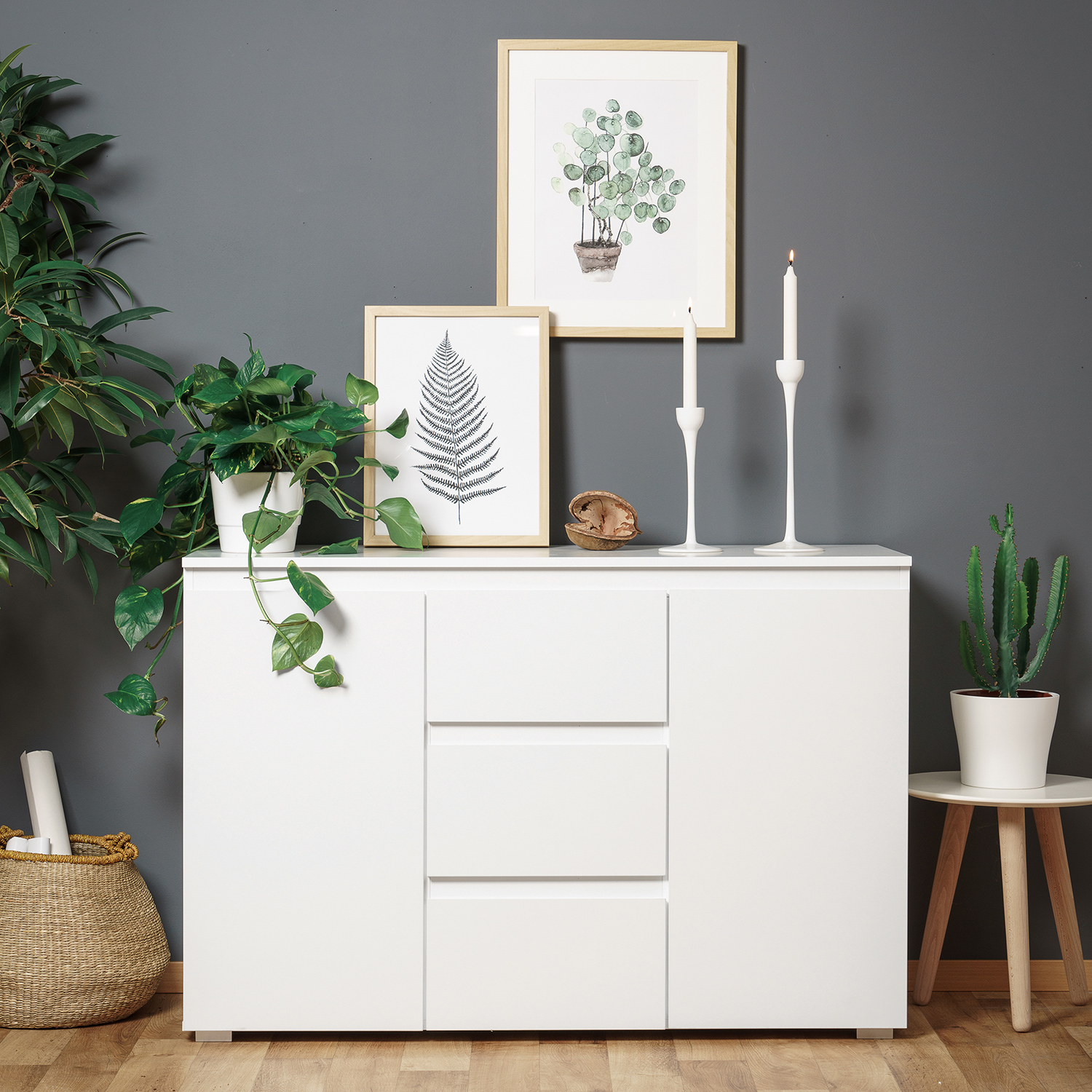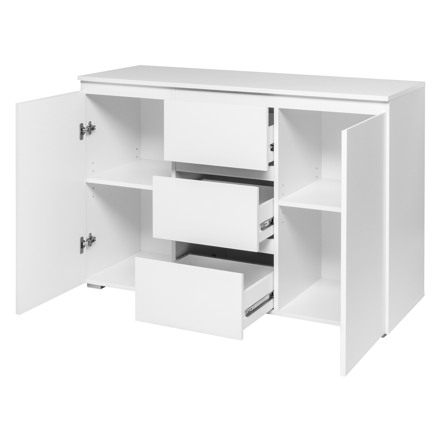 V našej ponuke nájdete nespočetné množstvo komôd, ktoré sa líšia tvarom, farbou, usporiadaním úložného priestoru a cenou. Komoda 2 dvere + 3 zásuvky IMAGE 4 vo farebnom prevedení biela je veľmi moderný kúsok, vhodný do spálne, obývačky alebo predsiene. Hladká komoda obsahuje dva úložné priestory s dvierkami, za ktorými sa nachádzajú dve police a v strede komody sú tri zásuvky s kovovými pojazdmi. Biela komoda vám poslúži samostatne, ale môžete ju doplniť aj iným nábytkom s označením IMAGE. Biela komoda bude vyzerať skvele v každom interiéri. V obývacej izbe poslúži na dokumenty, v predsieni ju môžete využiť na kľúče, papuče, dáždniky alebo iné drobnosti a v spálni sa do nej zmestí posteľná bielizeň, oblečenie a doplnky. Minimalistickú bielu komodu môžete ozdobiť modernými aj romantickými dekoráciami, podľa toho, ako chcete, aby miestnosť vyzerala. Skrátka, komoda IMAGE si vždy nájde miesto na dekoráciu a udrží poriadok.