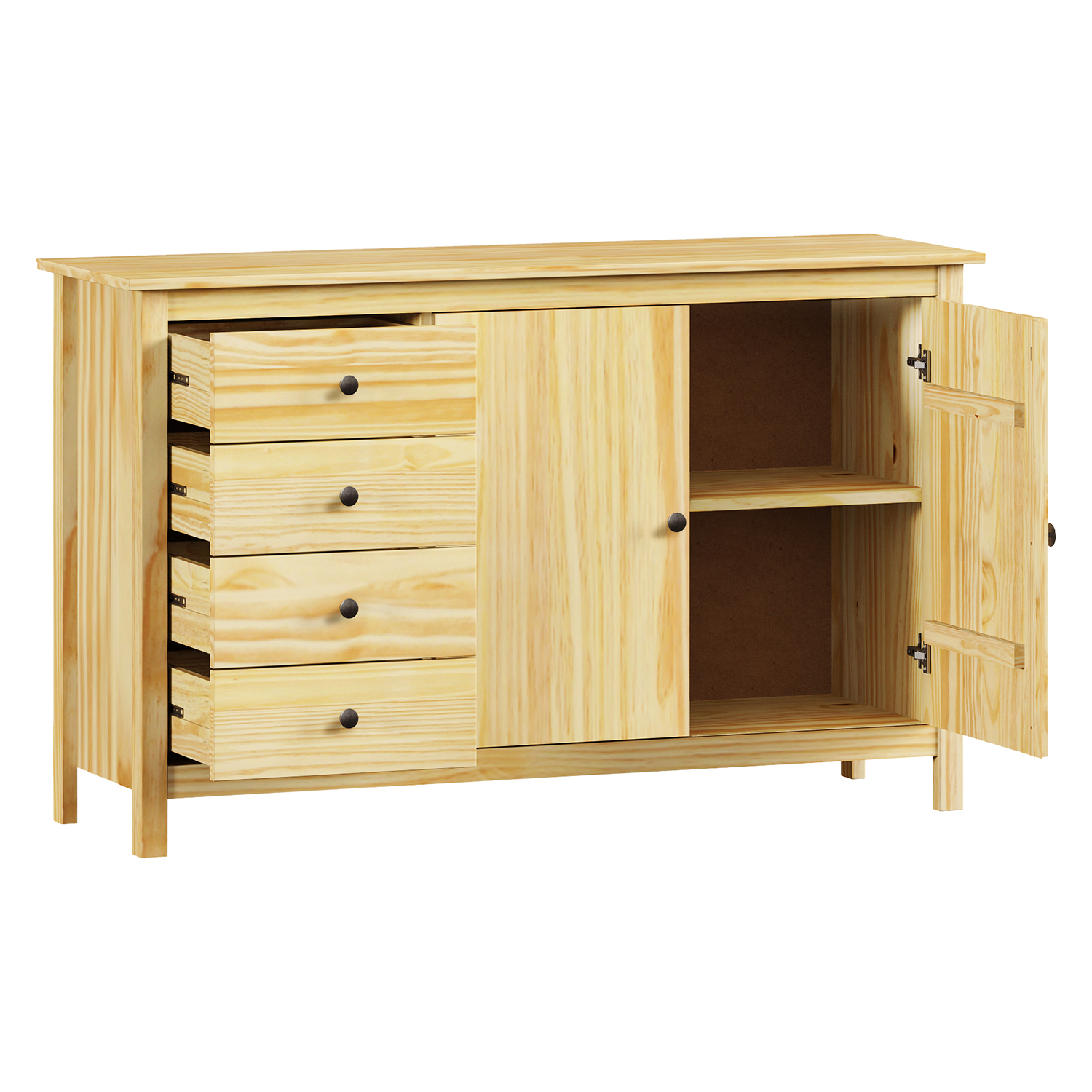 Kód produktu: 8093Kmateriál masív borovica, lakované prevedenie kovové úchytky vo farebnom prevedení černená mosadz 2 zásuvky s kovovými pojazdmi, 2 plné dvere, 1 polica vhodný doplnok nadstavec 8096K
