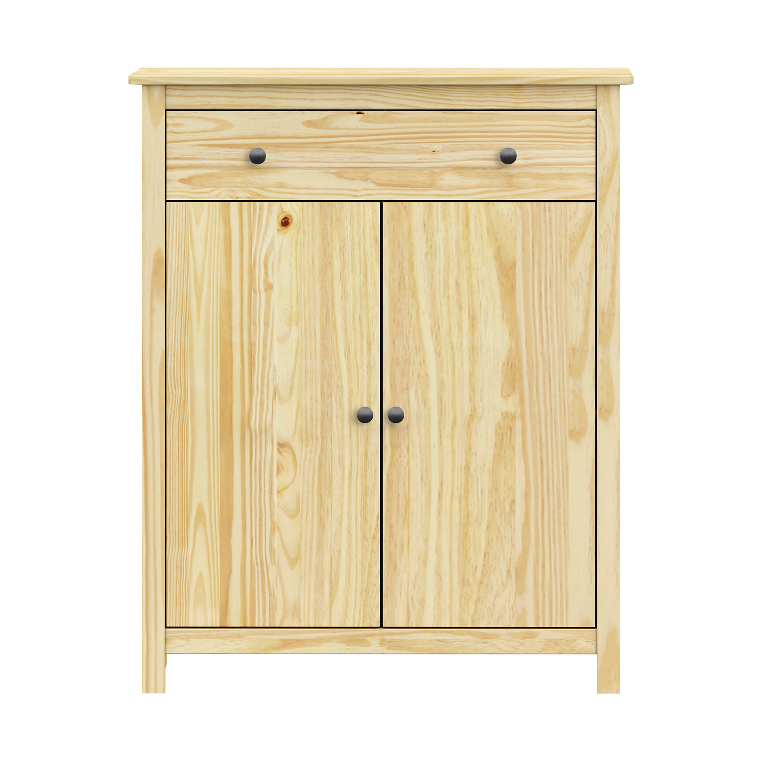 Kód produktu: 8094Kmateriál masív borovica, lakované prevedenie kovové úchytky vo farebnom prevedení černená mosadz 2 zásuvky s kovovými pojazdmi, 2 plné dvere, 1 polica vhodný doplnok nadstavec 8096K