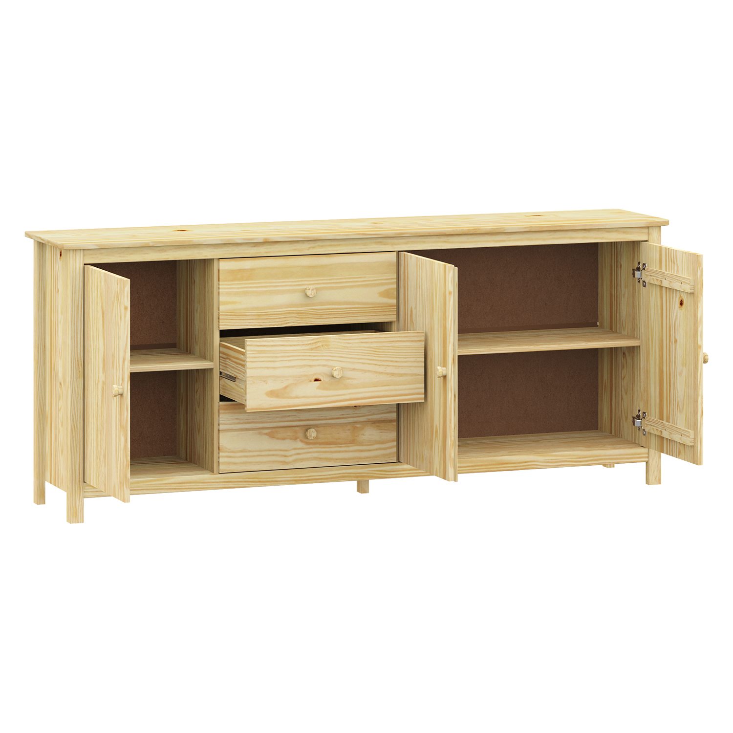 Kód produktu: 8072materiál masív borovica, lakované prevedenie 3 dvierka a 2 zásuvky s kovovými pojazdmi