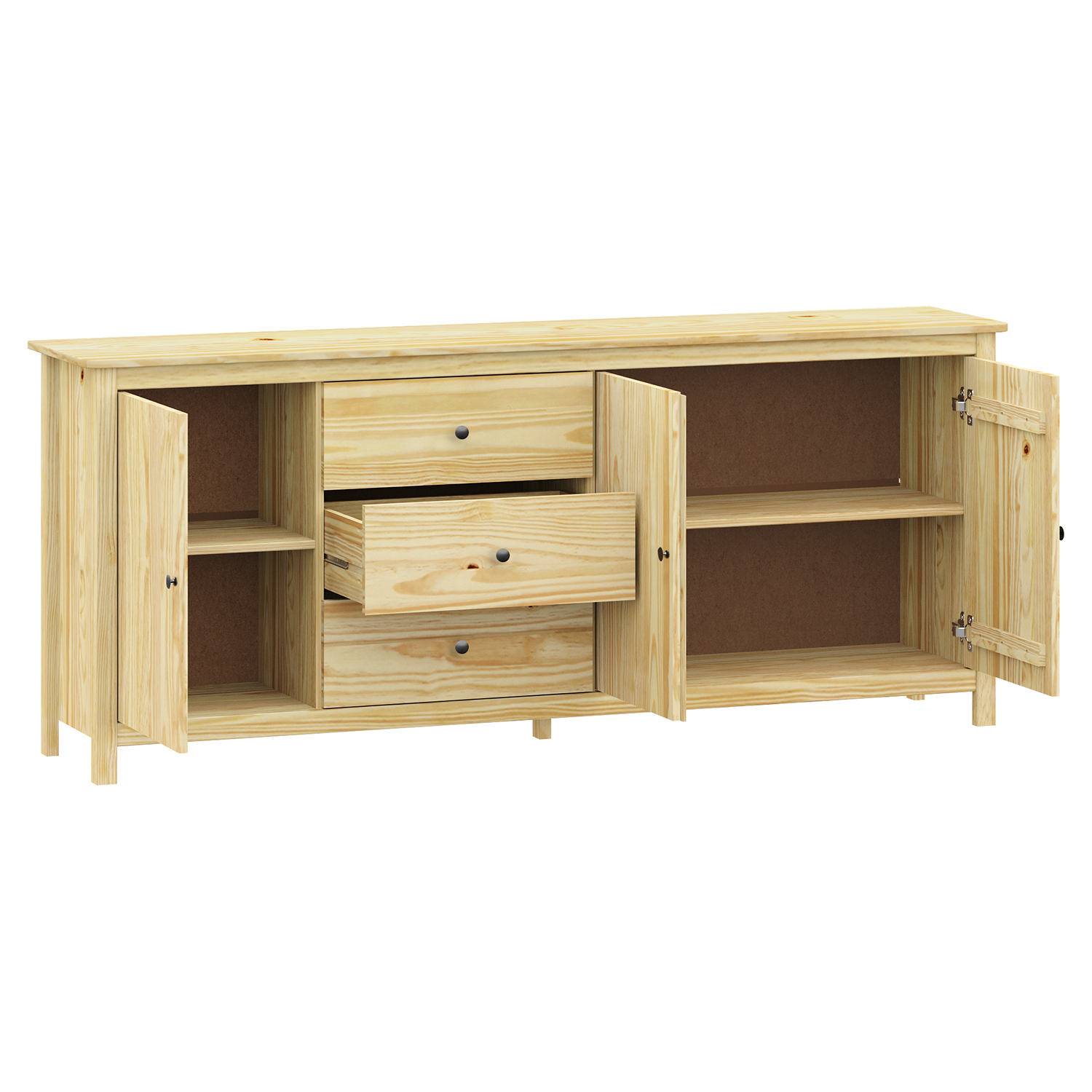 Kód produktu: 8085materiál masív borovica, lakované prevedenie kovové úchytky vo farebnom prevedení černená mosadz 3 dvere, 3 zásuvky s kovovými pojazdmi vhodný doplnok nadstavec TORINO 8063K