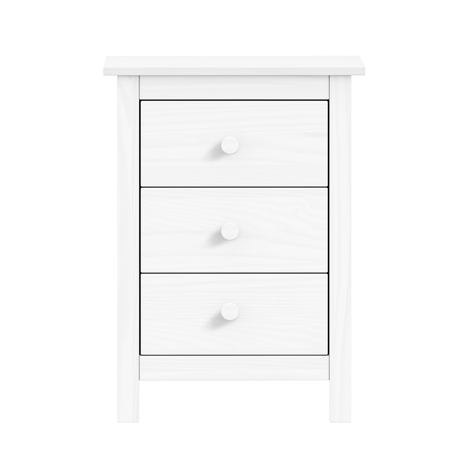 Kód produktu: 8077Bmateriál masív borovica, farebné prevedenie biely lak 3 zásuvky s kovovými pojazdmi, 1 polica