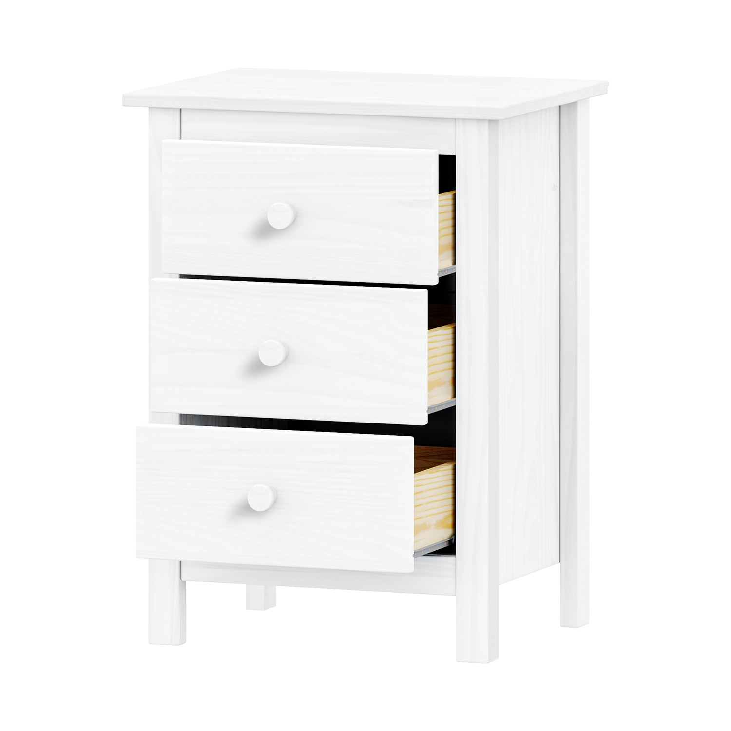 Kód produktu: 8077Bmateriál masív borovica, farebné prevedenie biely lak 3 zásuvky s kovovými pojazdmi, 1 polica