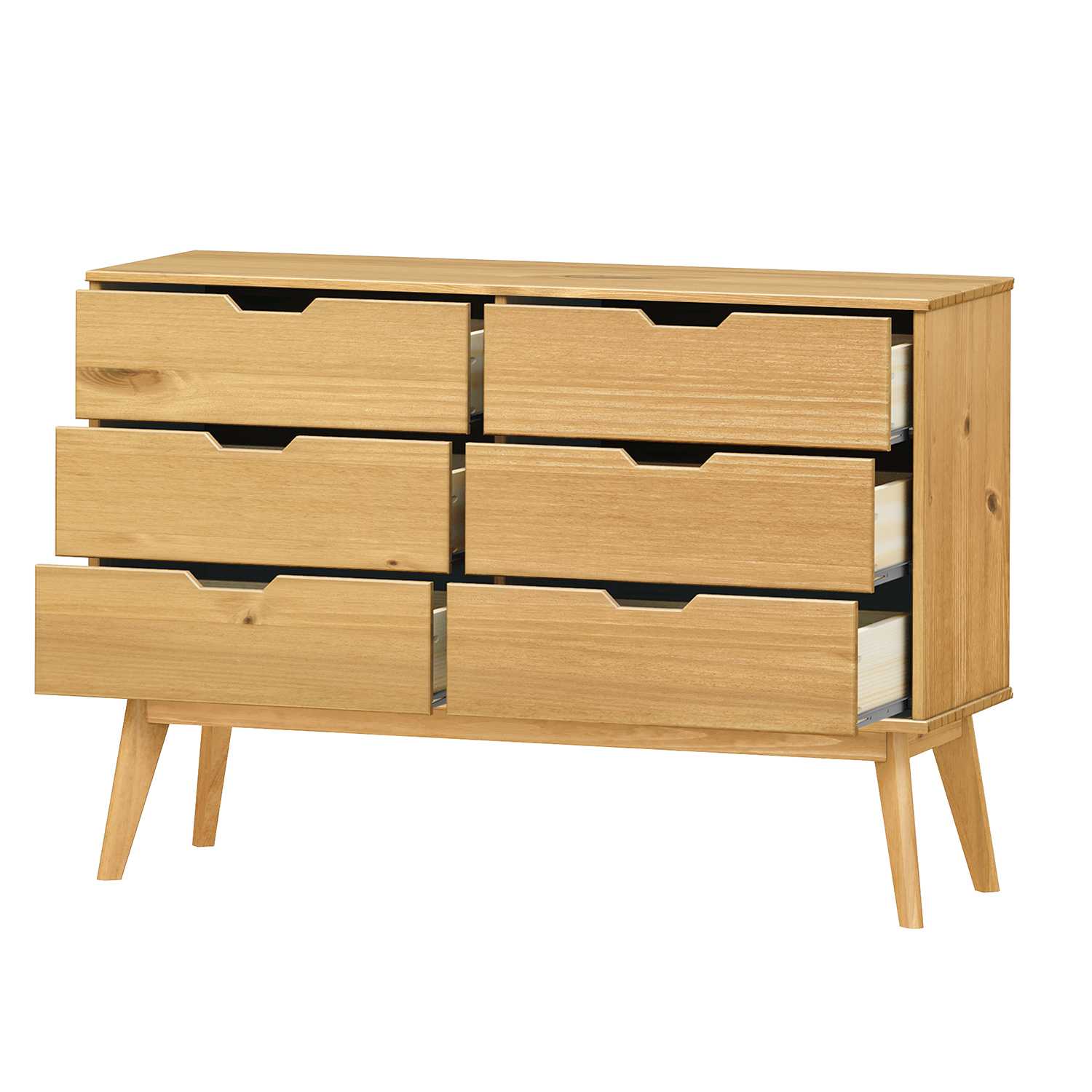 Kód produktu: 224261Vmateriál masív borovica, lakované prevedenie 6 zásuviek s kovovými pojazdmi
