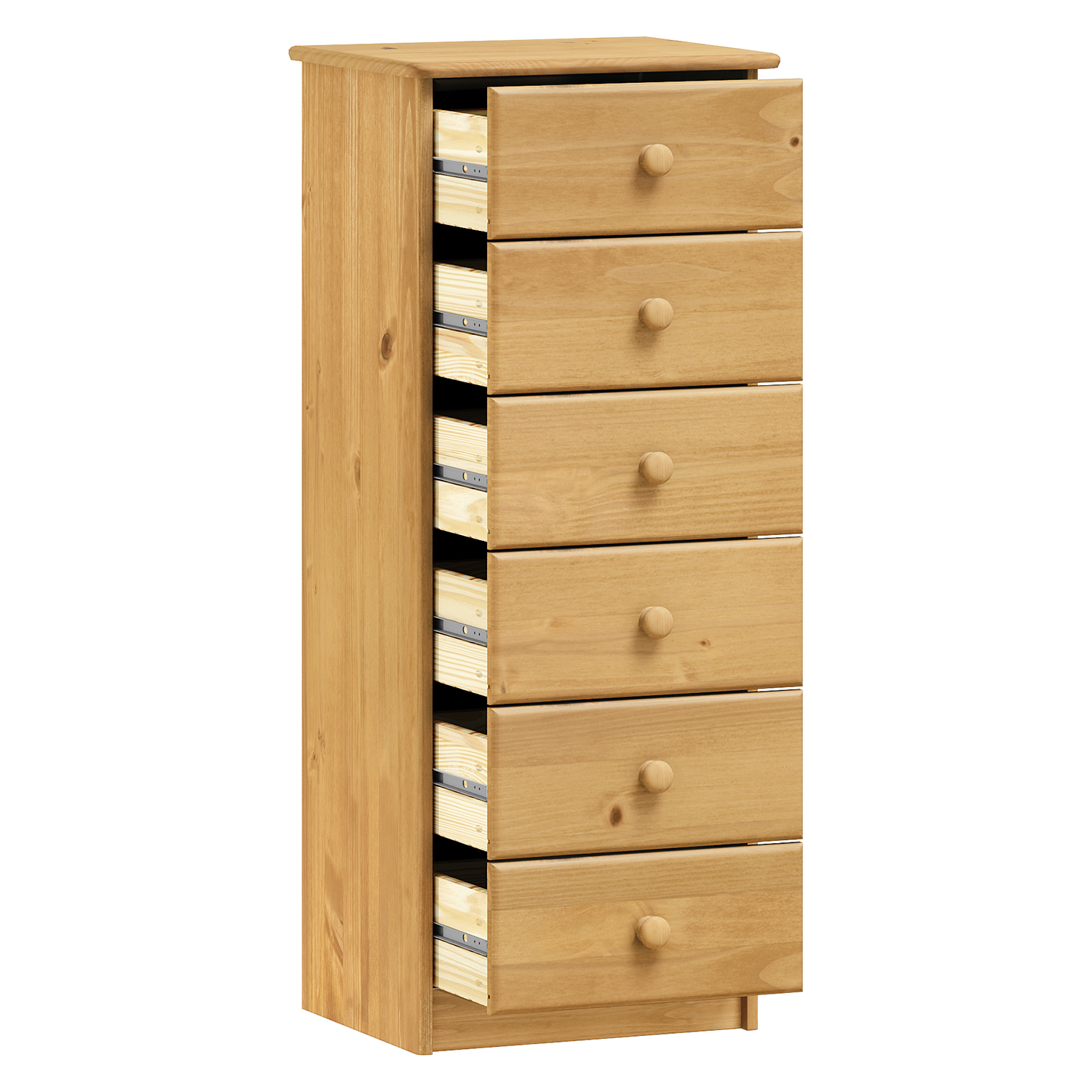 Kód produktu: 6Vmateriál masív borovica, voskované prevedenie 2 úzke a 3 široké zásuvky s kovovými pojazdmi, hĺbka zásuvky 27,5 cm