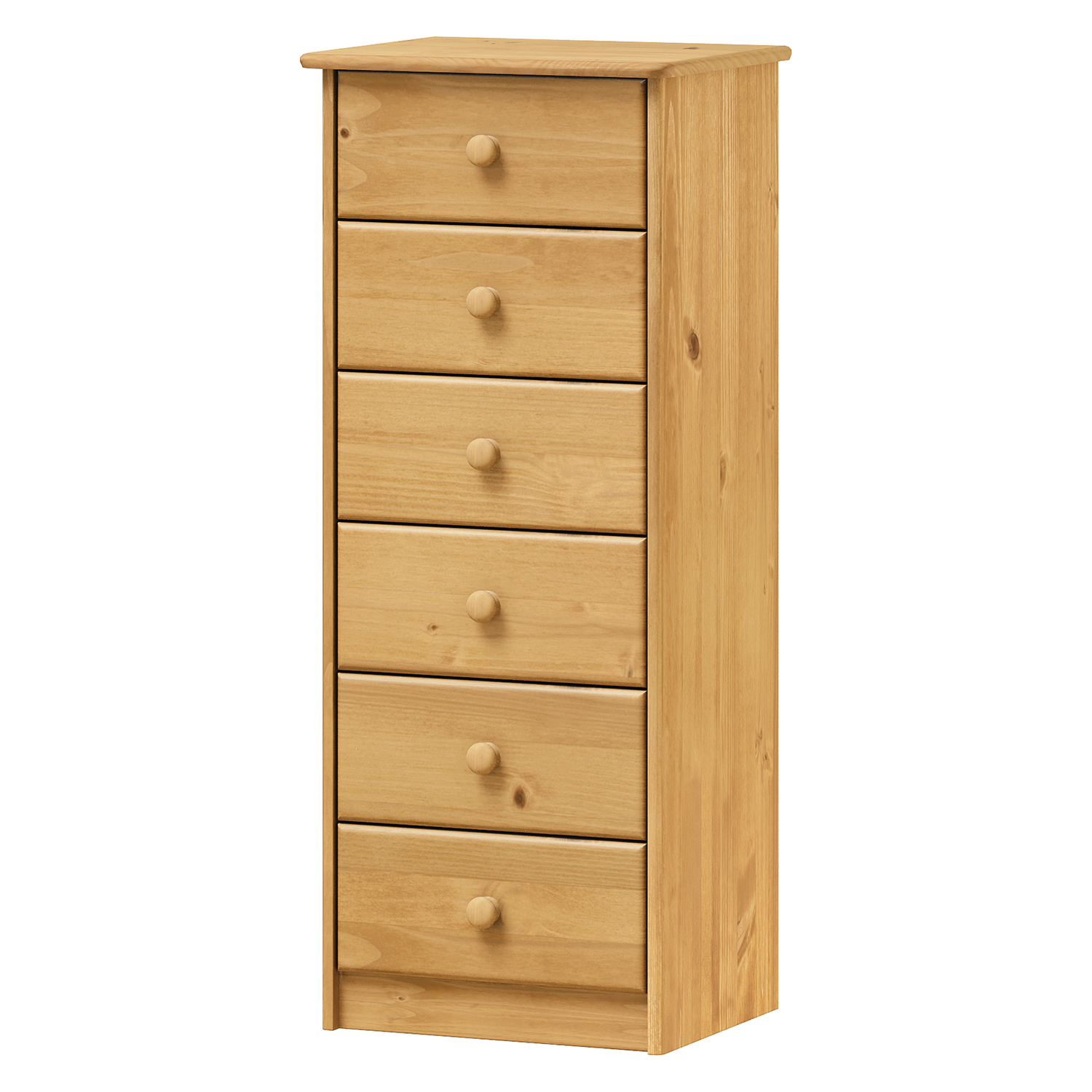 Táto nádherná komoda z masívnej borovice prináša do vášho domova kúzlo prírodného dreva a precízneho remeselného spracovania. Voskované prevedenie zvýrazňuje prirodzenú krásu borovice a poskytuje jej jemný, matný vzhľad, ktorý vyzerá skvele v akomkoľvek interiéri. Komoda je vybavená šiestimi priestrannými zásuvkami, ktoré poskytujú dostatok úložného priestoru pre všetky vaše potreby. Každá zásuvka je vybavená kvalitnými kovovými pojazdmi, ktoré zaisťujú hladký a tichý chod zásuviek. Vďaka hĺbke 27,5 cm môžete do zásuviek ľahko uložiť aj objemnejšie predmety, ako je oblečenie, posteľnú bielizeň alebo knihy.