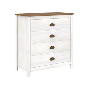 Nepoznáme nikoho, kto by nemal alebo aspoň nechcel mať doma praktickú komodu. Komody sú ozdobou aj platným nábytkom, ktorý vám slúži každý deň. Komoda TOPAZIO so 4 zásuvkami vo farebnom prevedení biely / hnedý lak bude ozdobou každej miestnosti. Masívna biela komoda s hnedou vrchnou doskou sa však najlepšie hodí do vašej spálne, kde spolu so zrkadlom vytvorí kútik na skrášlenie zovňajšku alebo popri šatníku doplní ďalší nevyhnutný úložný priestor na posteľnú bielizeň a uteráky. Štyri zásuvky s kovovými pojazdmi a výraznými úchytkami pojmú rôzne predmety. Ak sa teda rozhodnete zariadiť svoj domov nábytkom TOPAZIO, táto praktická komoda by rozhodne nemala chýbať na vašom nákupnom zozname.