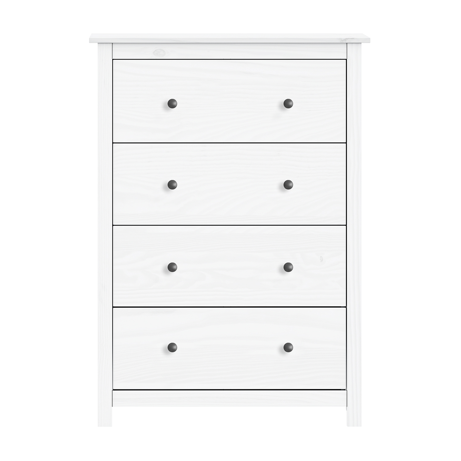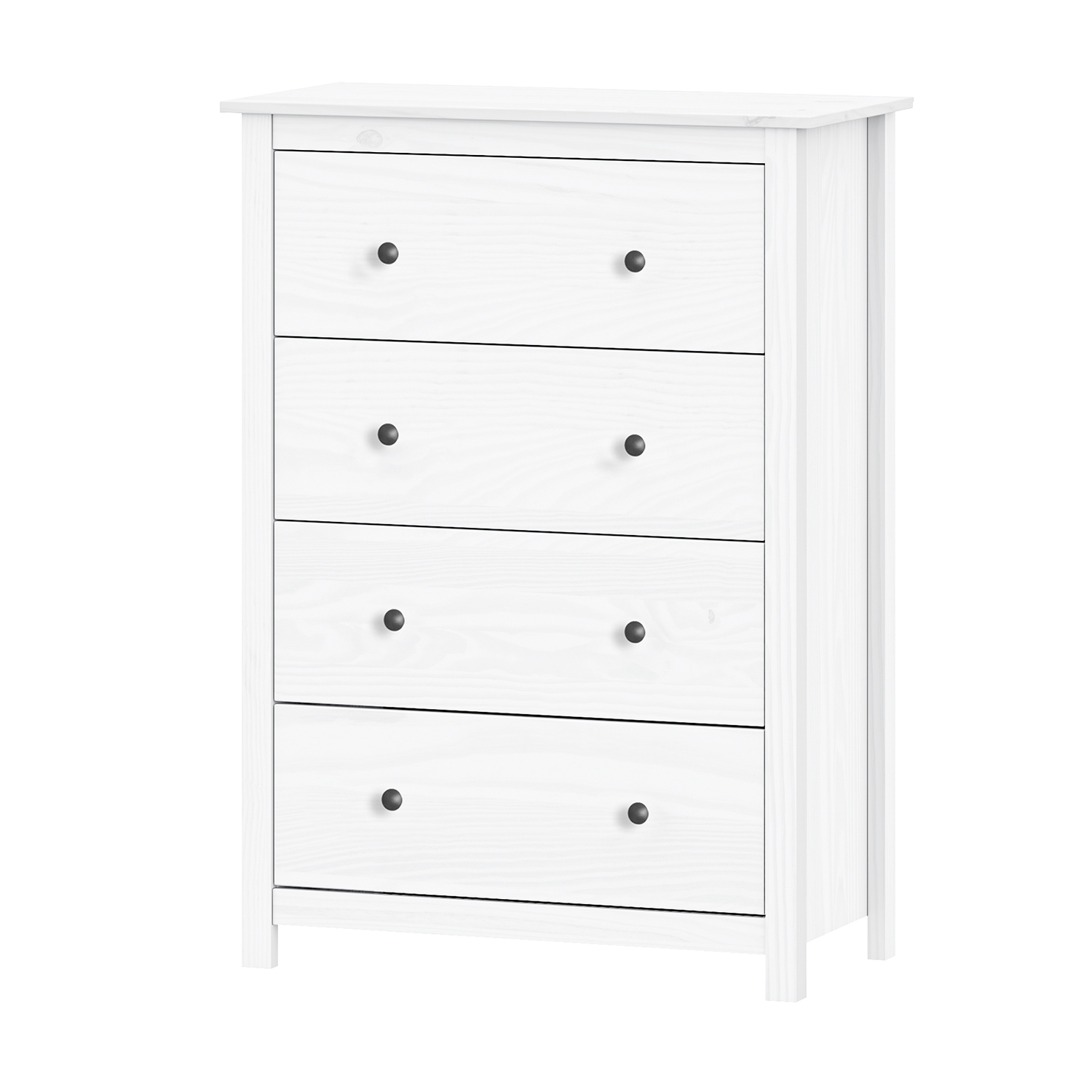 Kód produktu: 8096BKmateriál masív borovica, farebné prevedenie biely lak kovové úchytky vo farebnom prevedení černená mosadz 4 zásuvky s kovovými pojazdmi