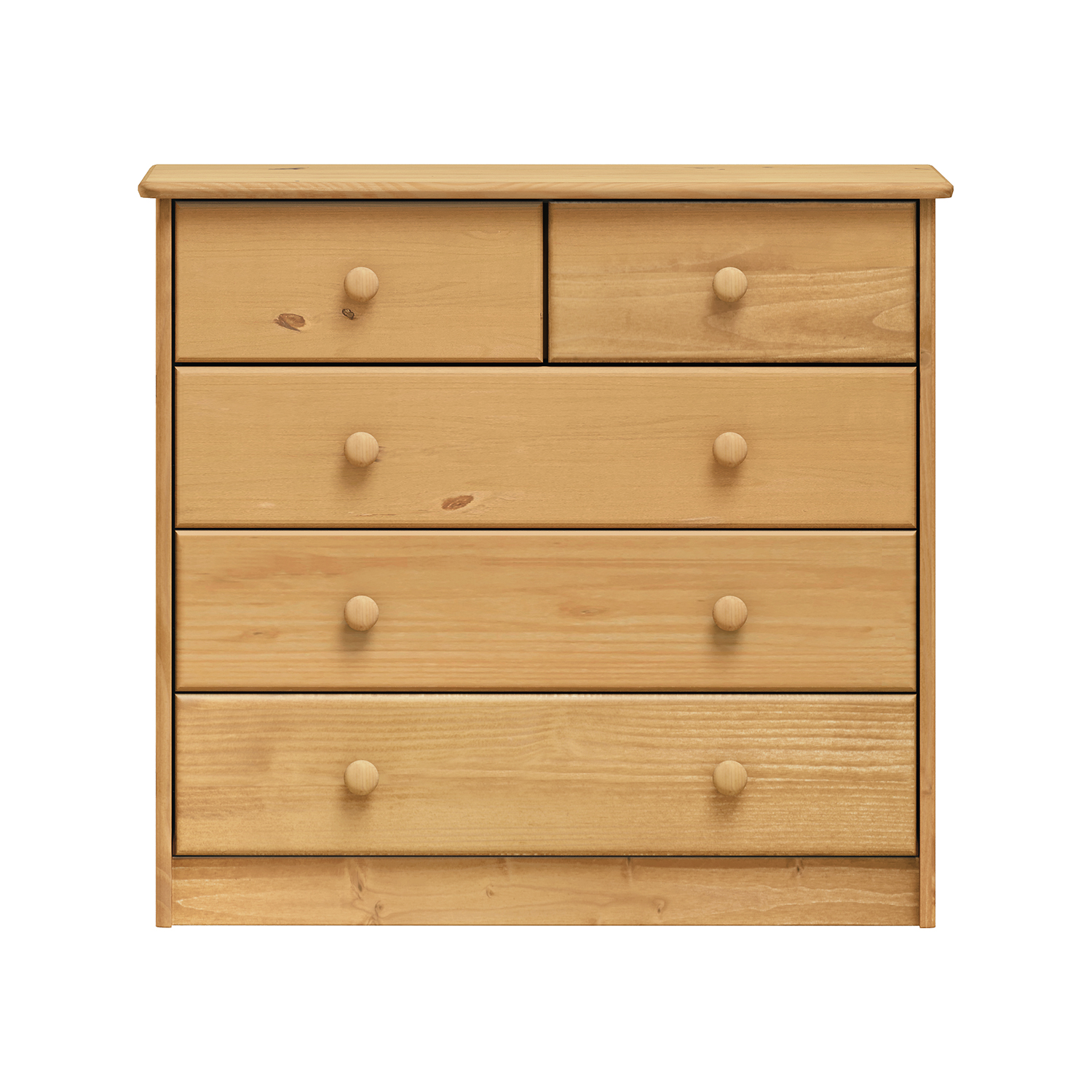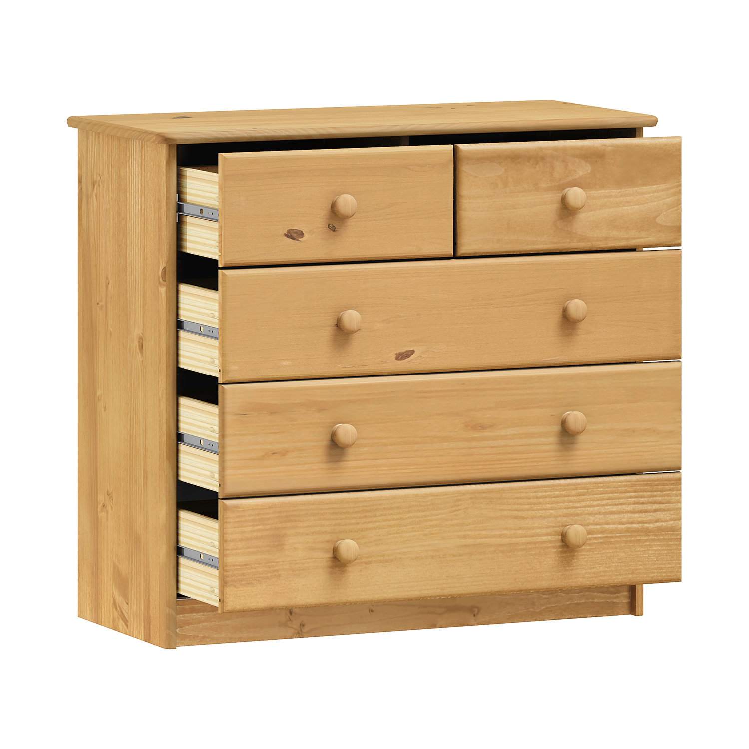 Objavte kúzlo prírodného dreva s našou komodou z masívnej borovice vo voskovanom prevedení. Táto komoda spája tradičné remeselné spracovanie s modernou funkčnosťou a stane sa stredobodom každého interiéru. Voskovanie nielen zvýrazňuje nádhernú štruktúru borovicového dreva, ale taktiež poskytuje ochranu a dlhú životnosť nábytku. Praktické usporiadanie ponúka dve úzke a tri široké zásuvky, všetky vybavené kovovými pojazdmi pre hladký a tichý chod. S hĺbkou zásuviek 27,5 cm poskytuje komoda dostatok úložného priestoru na všetky vaše potreby. Od drobností až po väčšie predmety. Úzke zásuvky sú ideálne na uloženie dokumentov, príborov alebo drobných doplnkov, zatiaľ čo široké zásuvky ponúkajú priestor na oblečenie, posteľnú bielizeň či iné väčšie predmety. Kombinácia elegancie, prírodnej krásy a praktickej funkčnosti robí z tejto komody nepostrádateľný kúsok, ktorý dodá vášmu domovu teplú a útulnú atmosféru. Pridajte do svojho interiéru šarm a praktickosť s touto nádhernou komodou.