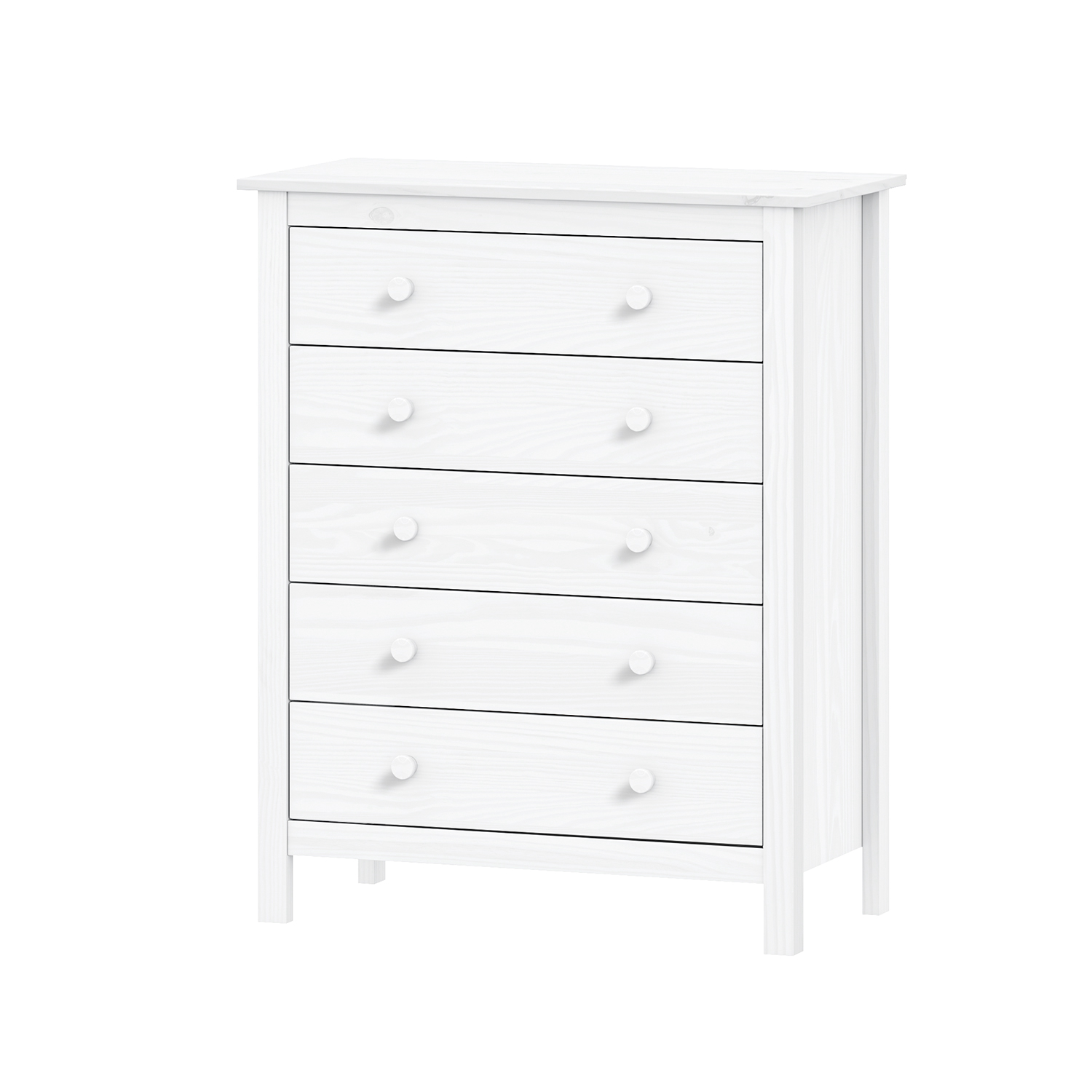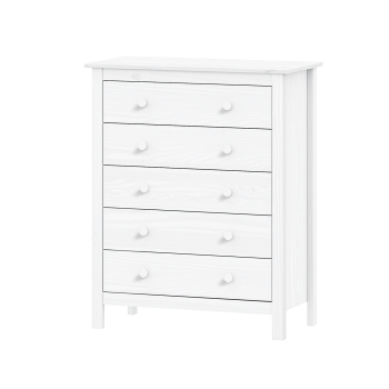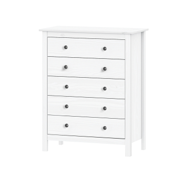Kód produktu: 8090Bmateriál masív borovica, farebné prevedenie biely lak 2 menšie a 3 väčšie zásuvky s kovovými pojazdmi