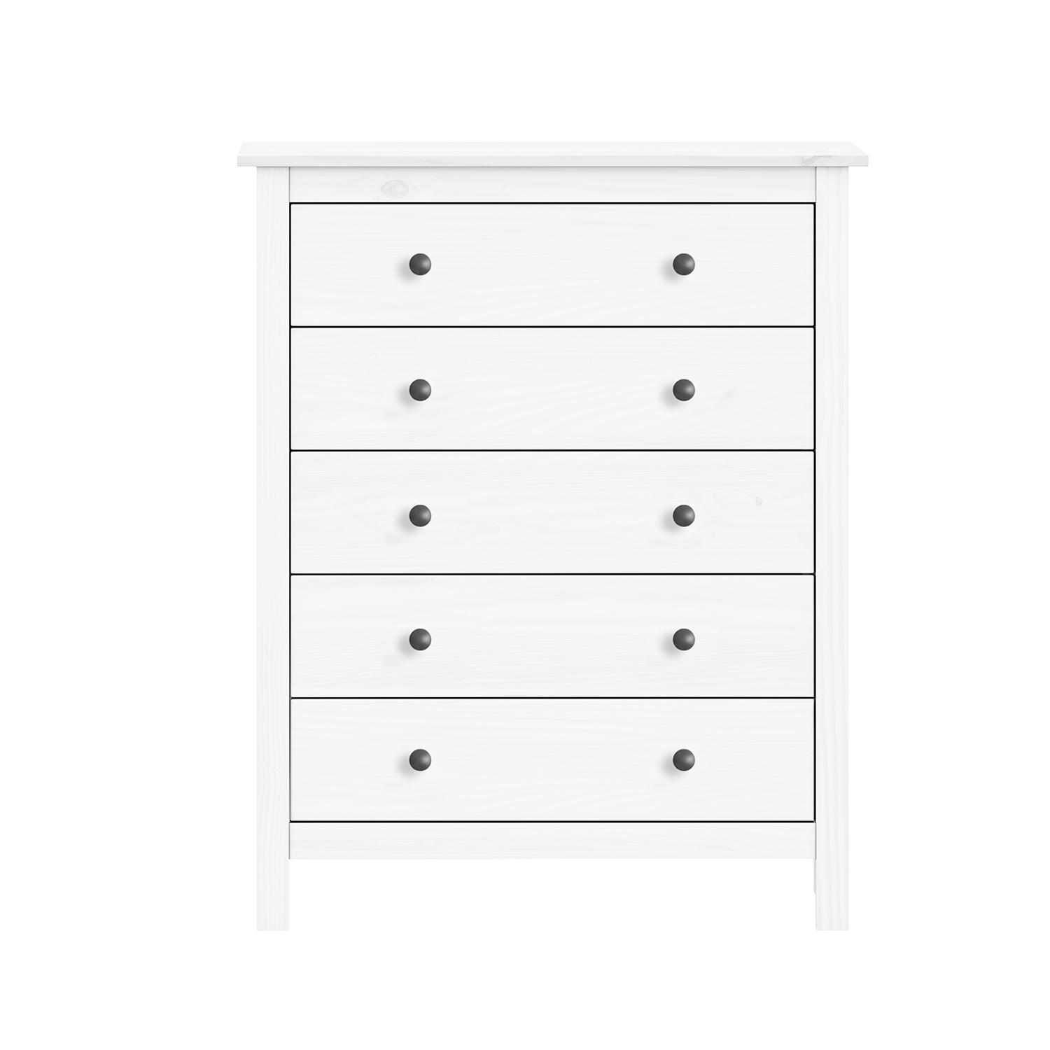 Komoda 5 zásuviek TORINO biela, kovové úchytky