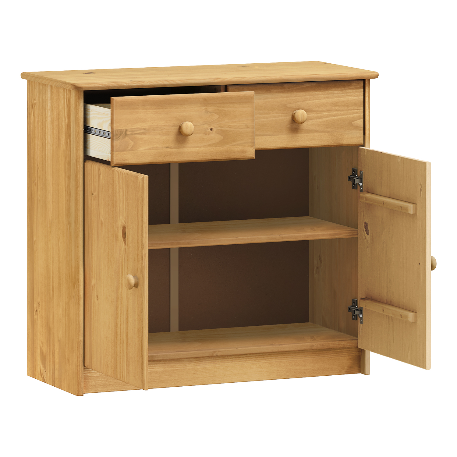 Komoda z masívneho borovicového dreva vo voskovanom prevedení bude štýlovým a praktickým doplnkom vašej domácnosti. Voskovanie zvýrazňuje prirodzenú krásu a štruktúru dreva a zároveň poskytuje nábytku ochranu a dlhú životnosť. Táto komoda má dve zásuvky s kovovými pojazdmi, ktoré zabezpečujú hladký a tichý chod. Zásuvky s hĺbkou 27,5 cm poskytujú dostatok priestoru na uloženie rôznych predmetov, ako sú príbory, dokumenty alebo iné drobnosti. Pod zásuvkami sa nachádza skrinka s dvierkami, ktorá ukrýva variabilnú policu. Tento úložný priestor je ideálny na väčšie predmety, ktoré potrebujete mať po ruke, ale zároveň ich chcete mať mimo dohľadu. Kombinácia zásuviek a skrinky s variabilnou policou poskytuje flexibilné a efektívne riešenie na usporiadanie vašich vecí. Vďaka kvalitným materiálom a starostlivému spracovaniu je táto komoda nielen funkčná, ale aj esteticky príťažlivá a dodá vášmu interiéru prirodzený šarm a hrejivú atmosféru.
