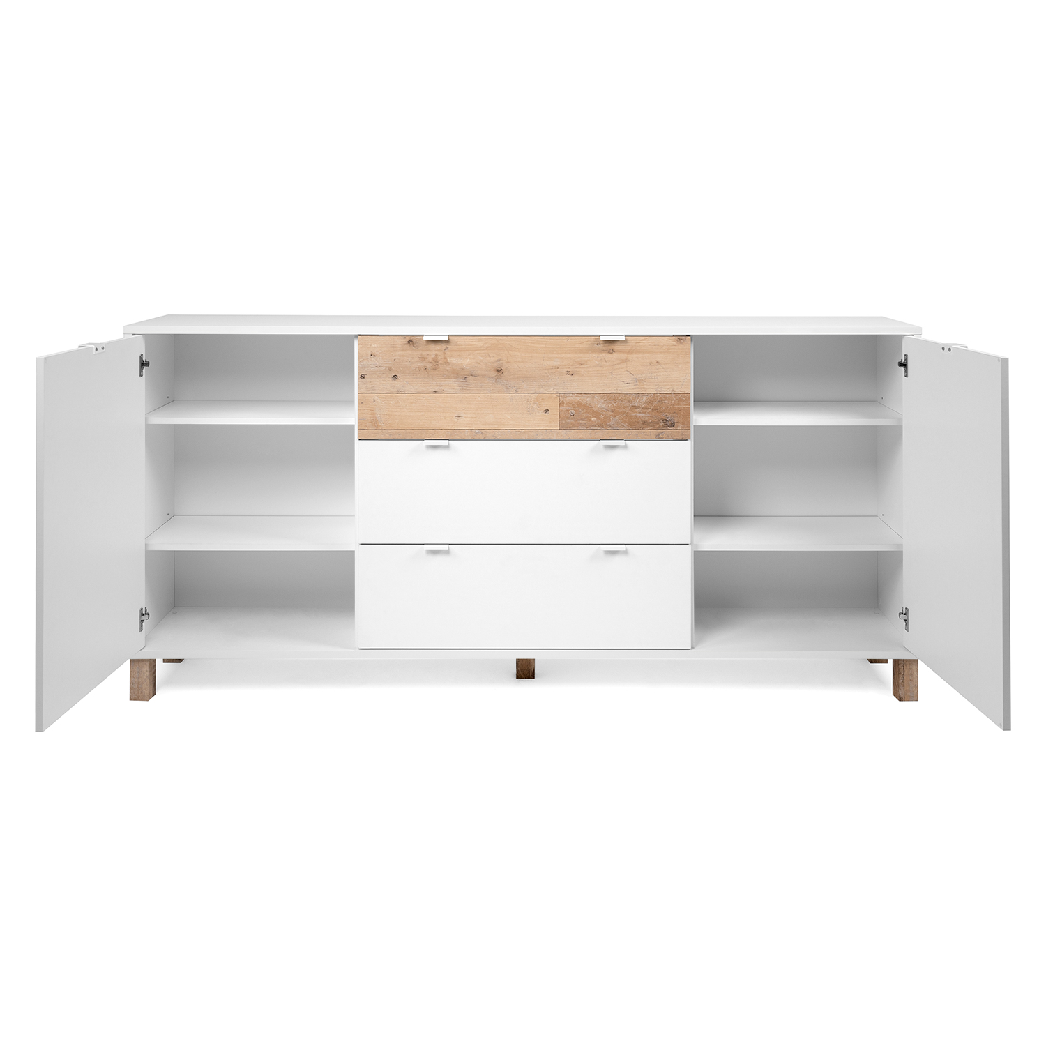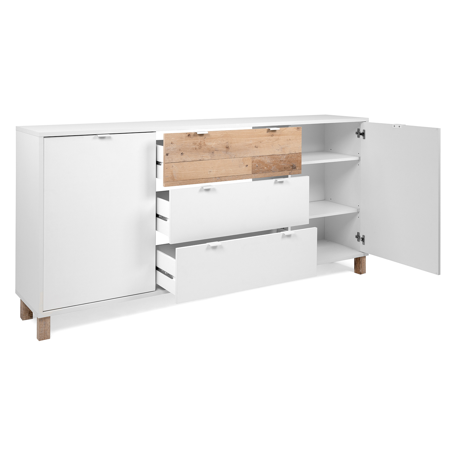 Svetlý nábytok je veľmi moderný a v spálni, kde má vládnuť absolútny pokoj, vám bude úplne vyhovovať, zaistí vám totiž príjemnú atmosféru vhodnú na odpočinok. Komoda MENORCA vo farebnom prevedení svetlý antik / biela jednoducho doplní ďalší nábytok MENORCA. Spodná bielizeň, tričká, osušky a uteráky zaberajú príliš veľa miesta v skrini, v komode teraz budú mať tieto veci svoje stále miesto. Komoda MENORCA obsahuje uprostred 3 zásuvky s kovovými pojazdmi a po bokoch 2 dvierka, za ktorými sa nachádzajú 4 variabilné police, komoda má kovové úchytky. Komoda, ktorá bude slúžiť ako bielizník či pomôže s umiestnením dokumentov, uložením prezuviek a doplnkov, môže stáť ako v spálni po boku ostatného nábytku MENORCA, tak samostatne v pracovni či predsieni. Svetlá komoda je kúskom nábytku, ktorý bude v izbe nielen dobre slúžiť, ale aj priestor krásne zdobiť. Využite jej kúzlo a umiestnite ju aj vo vašej domácnosti.