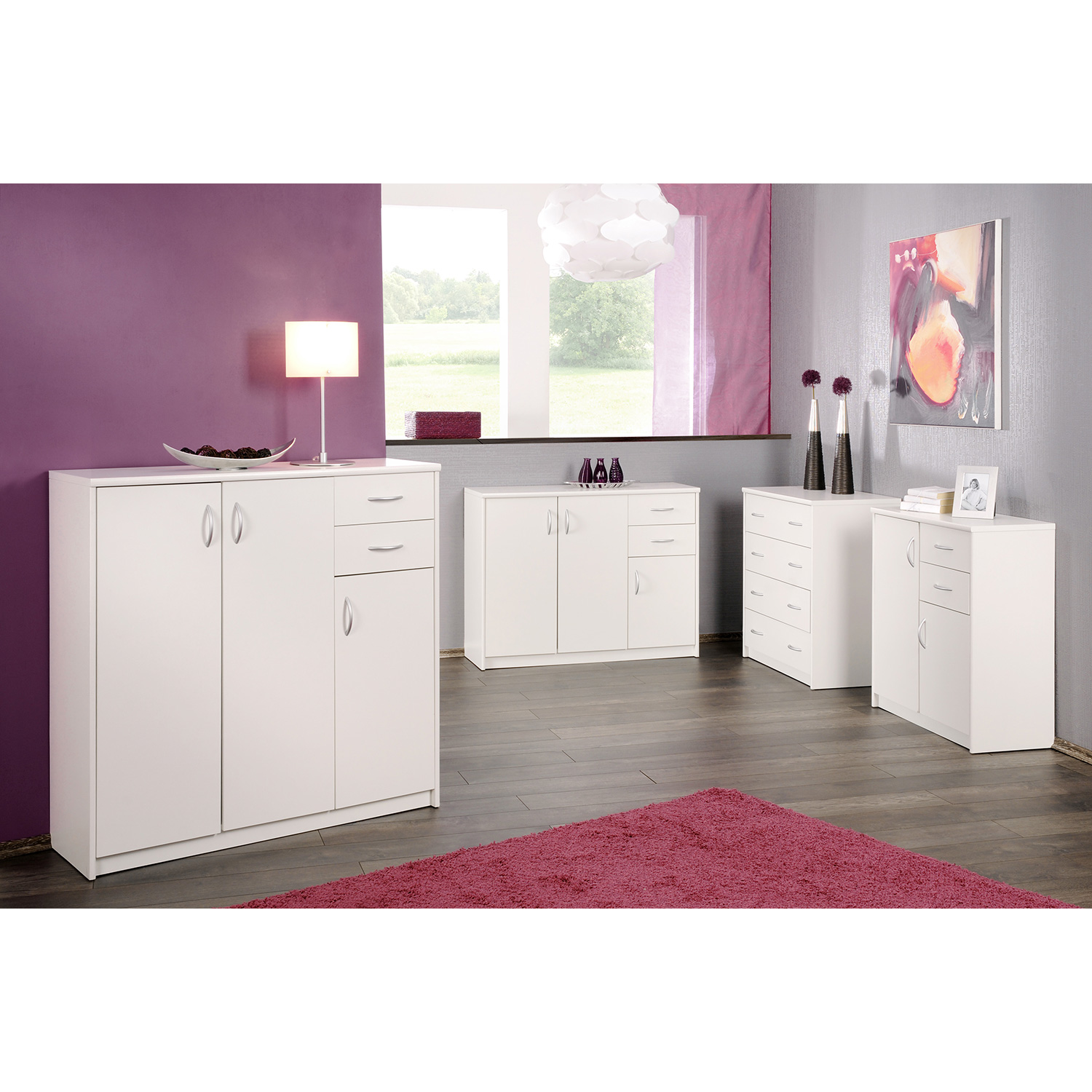 4 zásuvky s kovovými pojazdmi