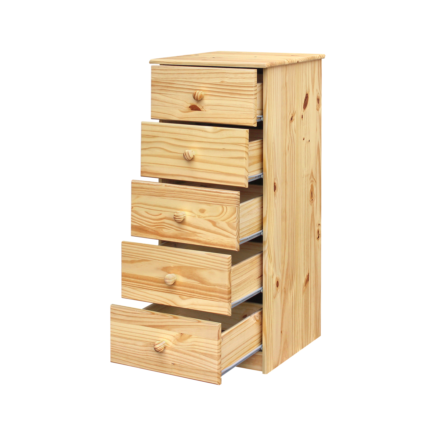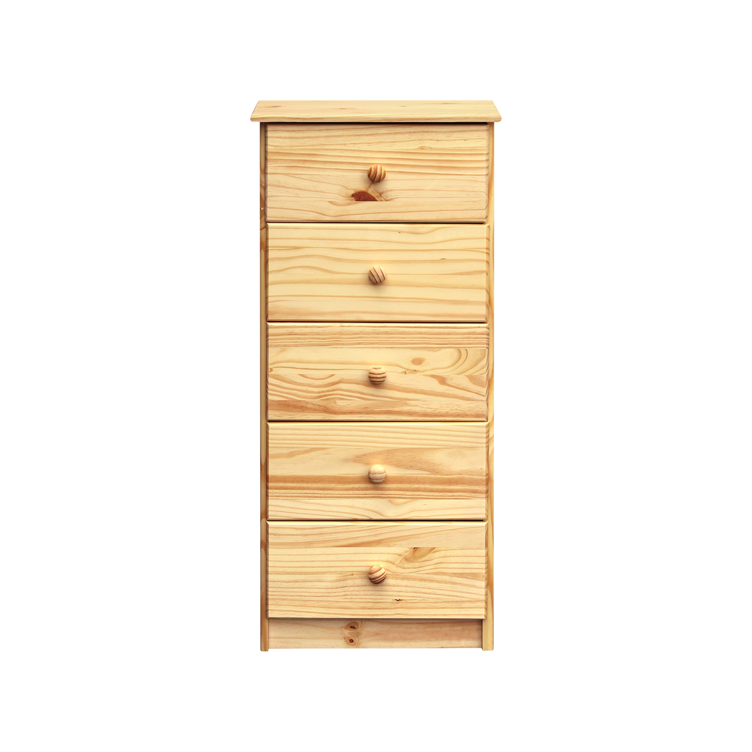 Ponožky, vreckovky, spodná bielizeň a doplnky, aby sa vám všetko neplietlo pohromade v jednej zásuvke, potrebujete šikovnú komodu, ktorá nezaberie toľko priestoru, ale krásne rozdelí všetku bielizeň. Komoda úzka 5 zásuviek v prevedení masív borovica sa stane nepostrádateľným pomocníkom v spálni aj detskej izbe. Masívna komoda obsahuje päť zásuviek s kovovými pojazdmi, do ktorých prehľadne rozdelíte všetky veci. Kvalitnú komodu však možno využiť aj na uloženie najrôznejších dokumentov a kníh, do menších zásuviek narovnajú poznámky študenti, obrázky deti a zmluvy ich rodičia. Komoda teda bude stáť vedľa pracovného stola v kancelárii alebo v izbe, a to namiesto kontajnera. Jednoduchá komoda nájde svoje uplatnenie vo všetkých interiéroch vybavených nábytkom v prevedení masív. Aj malý nábytok môže zastať veľkú prácu.