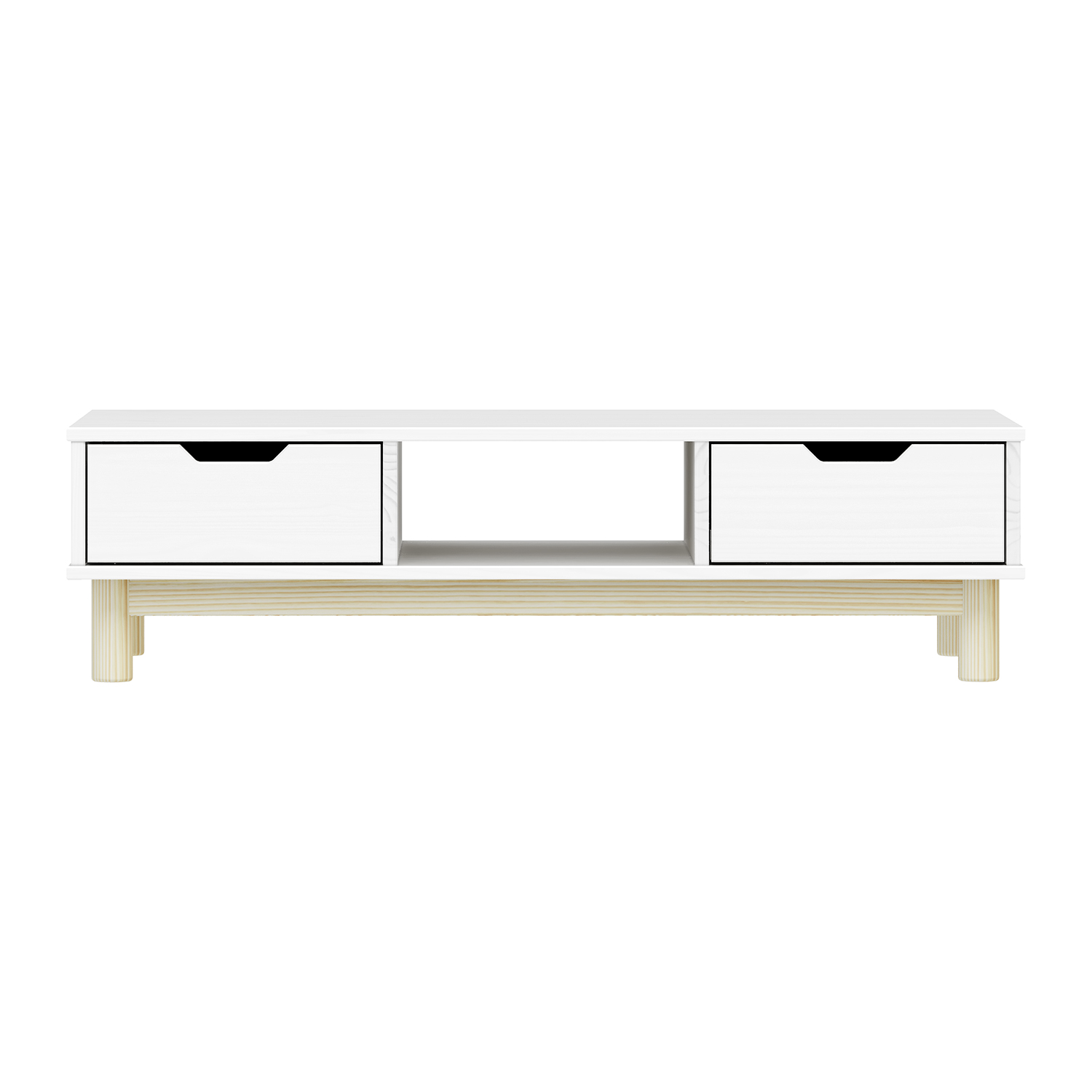 Kód produktu: 324101materiál masív borovica, farebné prevedenie biely lak 2 zásuvky s kovovými pojazdmi, 1 dvierka, 1 polica otvor na pretiahnutie káblov