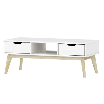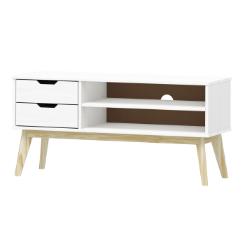 Kód produktu: 224101Vmateriál masív borovica, lakované prevedenie 2 zásuvky s kovovými pojazdmi, 1 polica otvor na pretiahnutie káblov