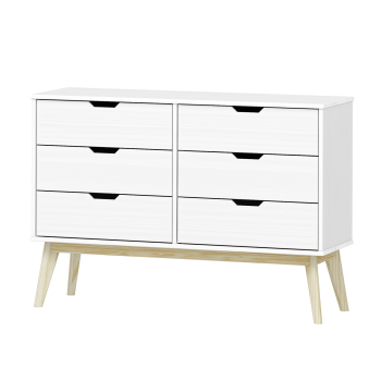 Kód produktu: 224267materiál masív borovica, farebné prevedenie biely lak 6 zásuviek s kovovými pojazdmi