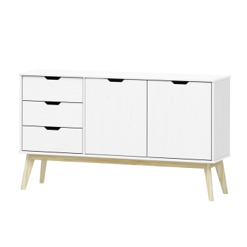 Kód produktu: 224291Vmateriál masív borovica, lakované prevedenie 3 zásuvky s kovovými pojazdmi, 2 dvierka, 1 polica