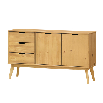 Kód produktu: 22431Bmateriál masív borovica voskovaná v medovom odtieni 3 zásuvky s kovovými pojazdmi, 2 dvierka, 1 polica