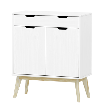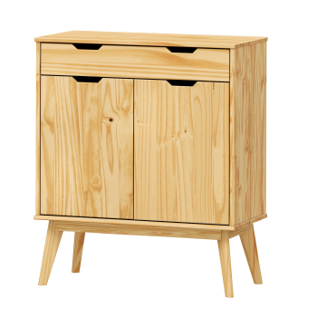 Kód produktu: 224343Vmateriál masív borovica, lakované prevedenie 1 zásuvka s kovovými pojazdmi, 2 dvierka, 1 polica