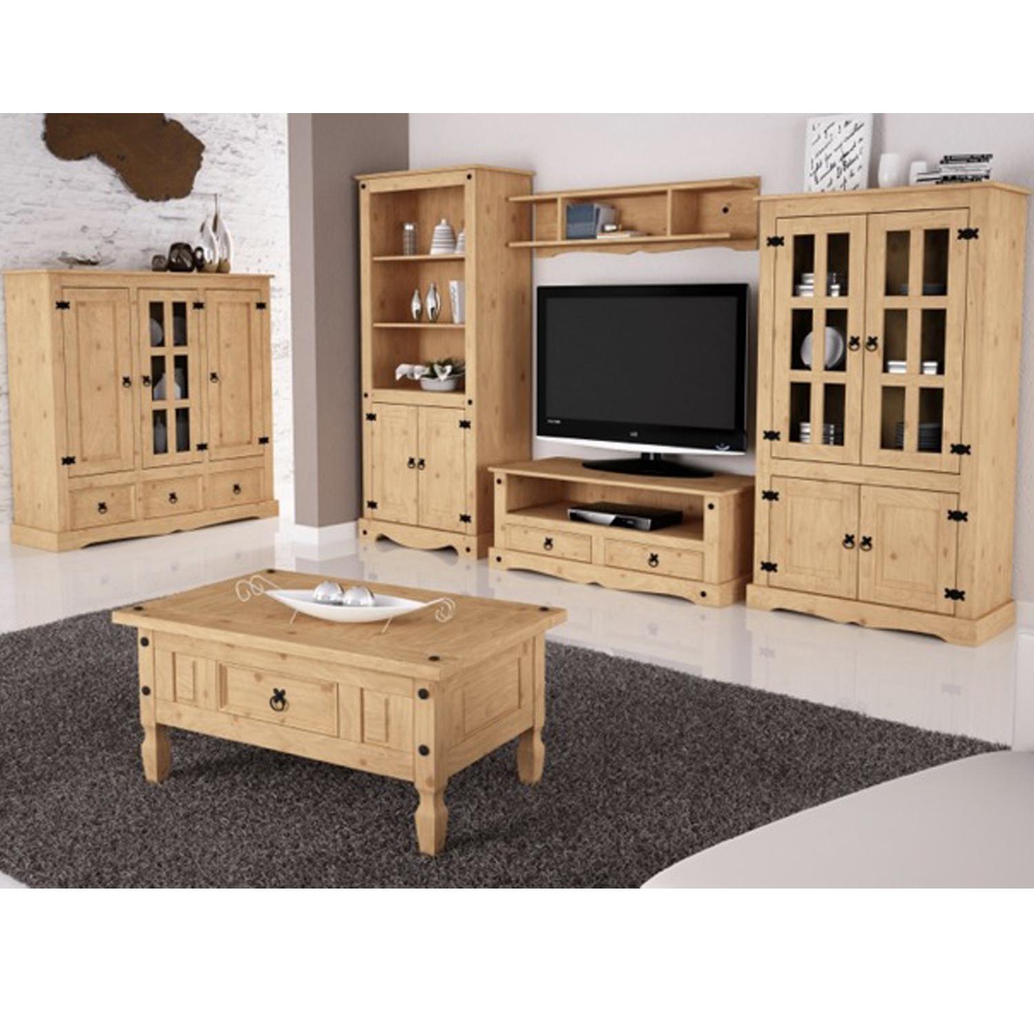 Kód produktu: 1639materiál masív borovica voskovaná v medovom odtieni presklená časť, 3 police, 1 plná dvierka, 2 veľké zásuvky hĺbka zásuvky 32 cm, kovové ozdobné úchytky súčasť zostavy Corona