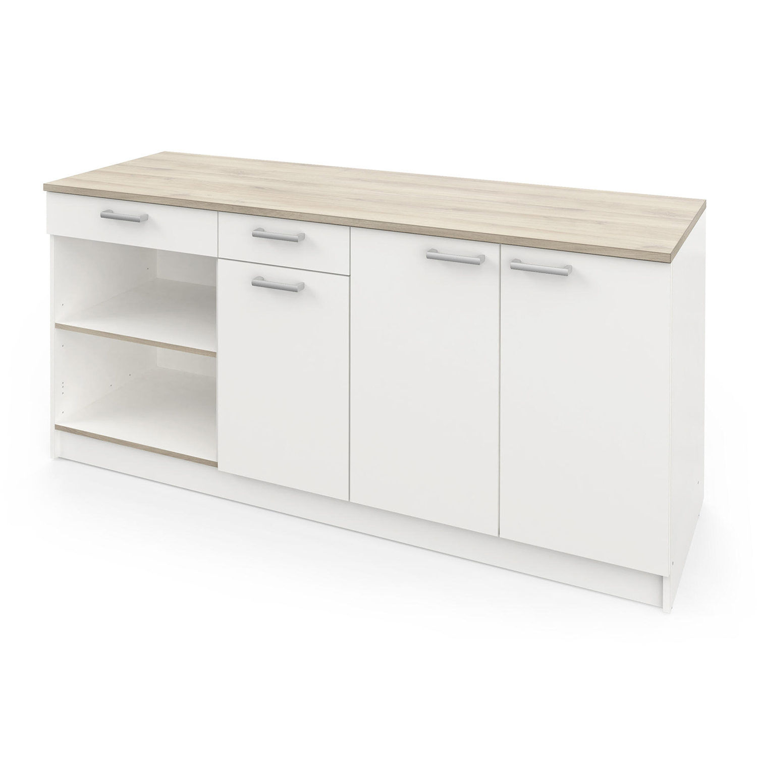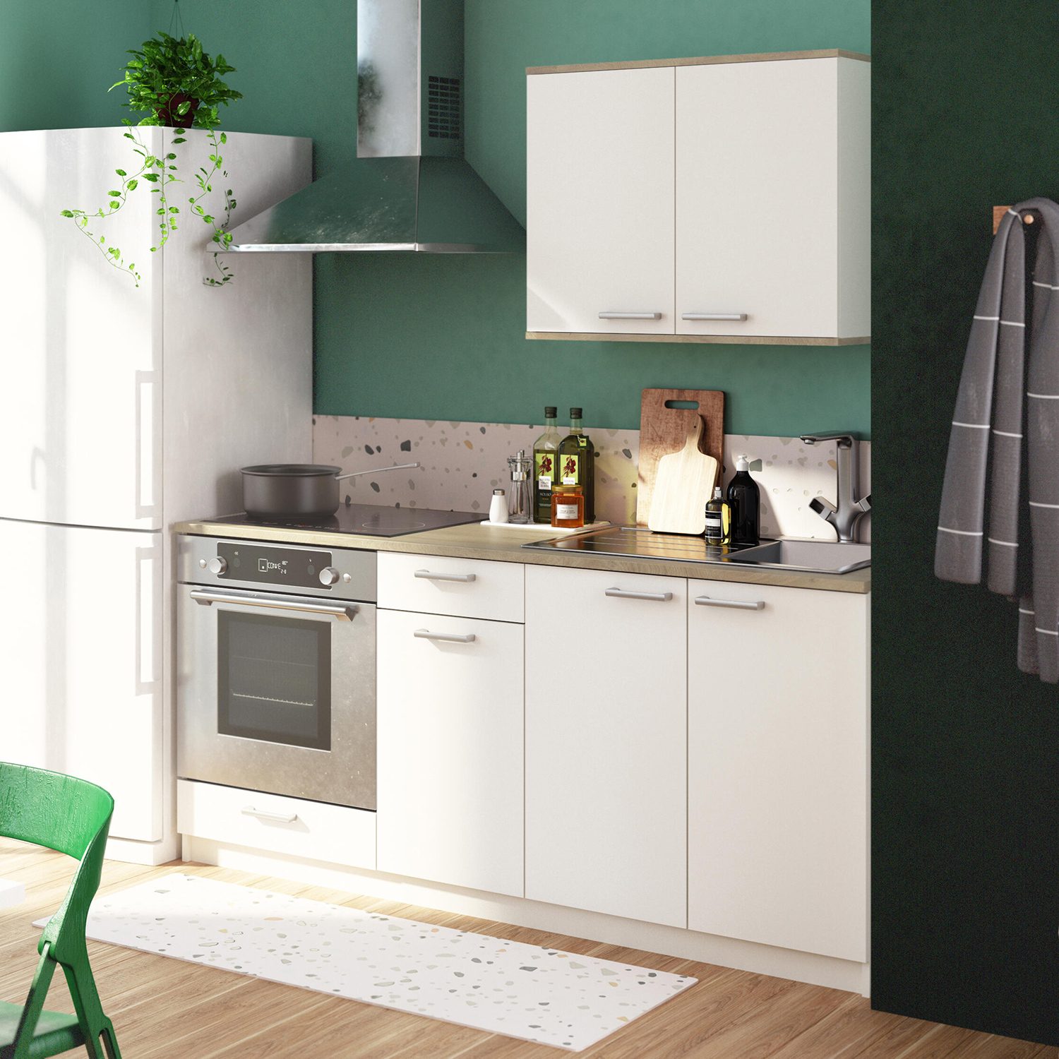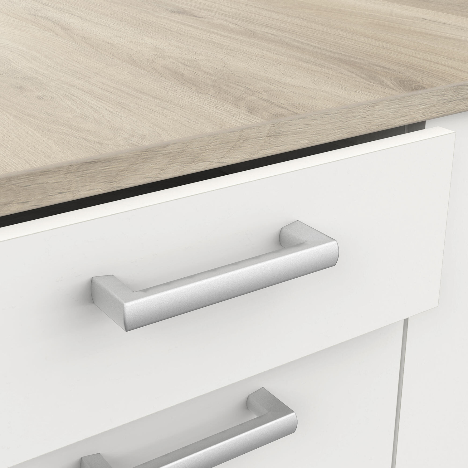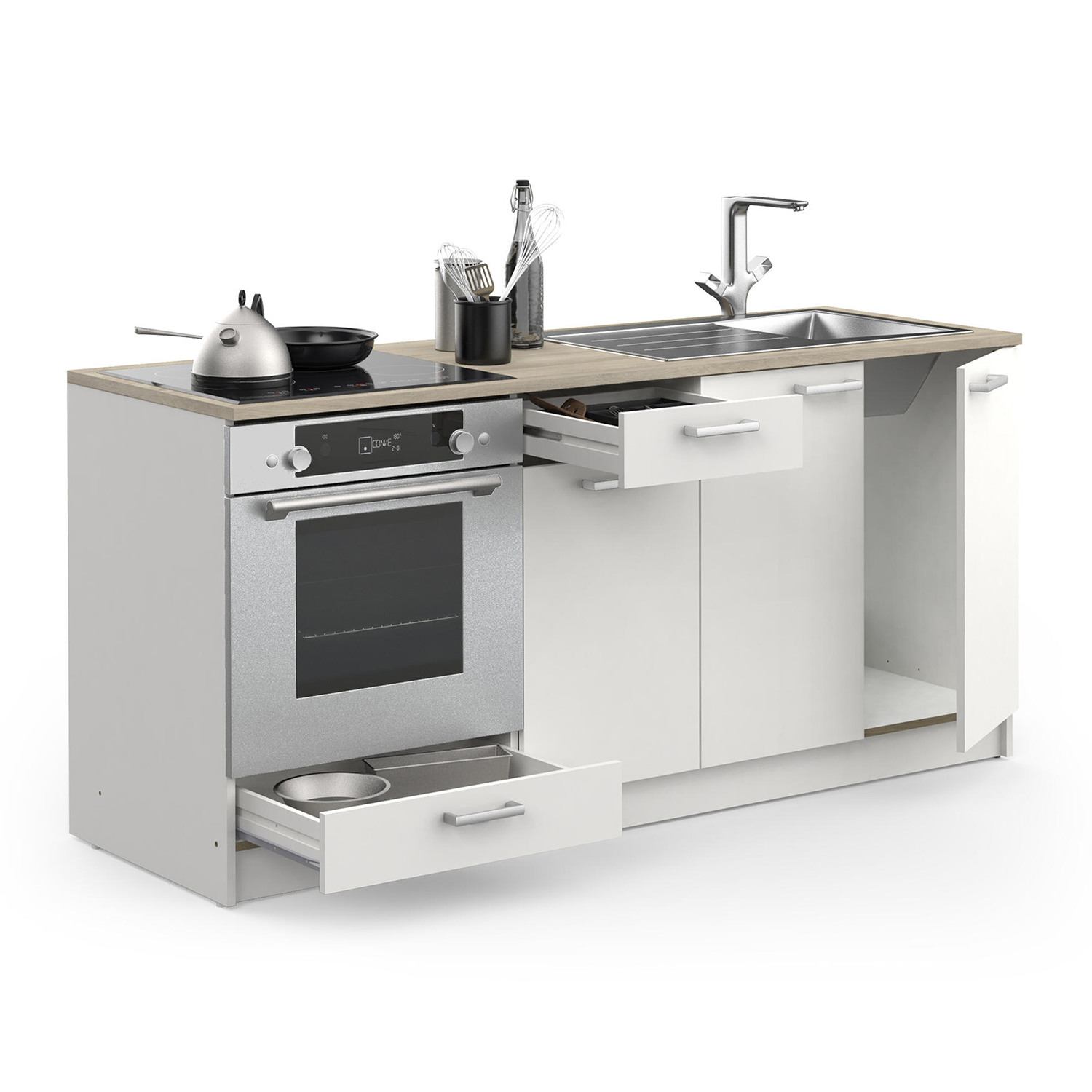 Kuchynská linka COOKING dub Kronberg / matná biela krásne presvetlí celú kuchyňu. Má nastaviteľné nôžky, takže si jednoducho výšku linky určíte sami. Zostava sa skladá z 3 skriniek, dokúpiť sa dá ešte závesná skrinka nad linku, ktorá má označenie COOKING 300433. Linka je vybavená aj 2 zásuvkami na príbory či varešky. Jedna zo skriniek je určená na umiestnenie vstavaného spotrebiča. Do hornej dosky je možné umiestniť drez a varnú dosku. Aj keď kuchynská linka COOKING nepatrí medzi obrov, tak dokáže ponúknuť všetko, čo gazdinka v kuchyni potrebuje.
