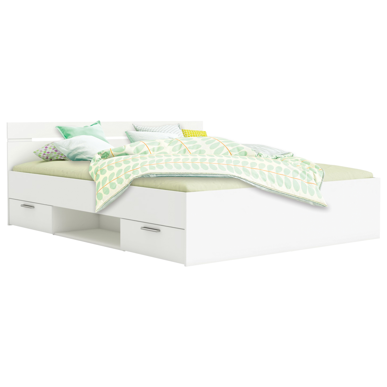Multifunkčná posteľ MICHIGAN je u našich zákazníkov veľmi obľúbená. Jej moderný vzhľad a predovšetkým šikovný úložný priestor totiž uspokojí aj tých najnáročnejších zákazníkov. Posteľ v rozmere 160 × 200 cm v krásnej matnej bielej farbe bude vyhovovať ako vám, tak vášmu partnerovi. Do dvoch menších zásuviek s kovovými pojazdmi pod posteľou uložíte najrôznejšie drobnosti či dekoračné vankúšiky a tenký prehoz. Medzi zásuvkami sa nachádza priestranná nika, do ktorej odložíte knihu aj časopisy, alebo ju ozdobíte najrôznejšími dekoráciami, škatuľami či boxmi. Vďaka čelu postele si podložíte chrbát vankúšom a prečítate si obľúbenú knihu, či sa pozriete na zaujímavú reláciu v televízii. Krásna a pohodlná posteľ bude dominantou vašej spálne, vyberte si teda kúsok, ktorý lahodí nielen vášmu oku, ale bude vyhovovať aj vášmu unavenému chrbtu. Multifunkčná posteľ MICHIGAN vám zaistí ako moderne vybavenú spálňu, tak plnohodnotný spánok.