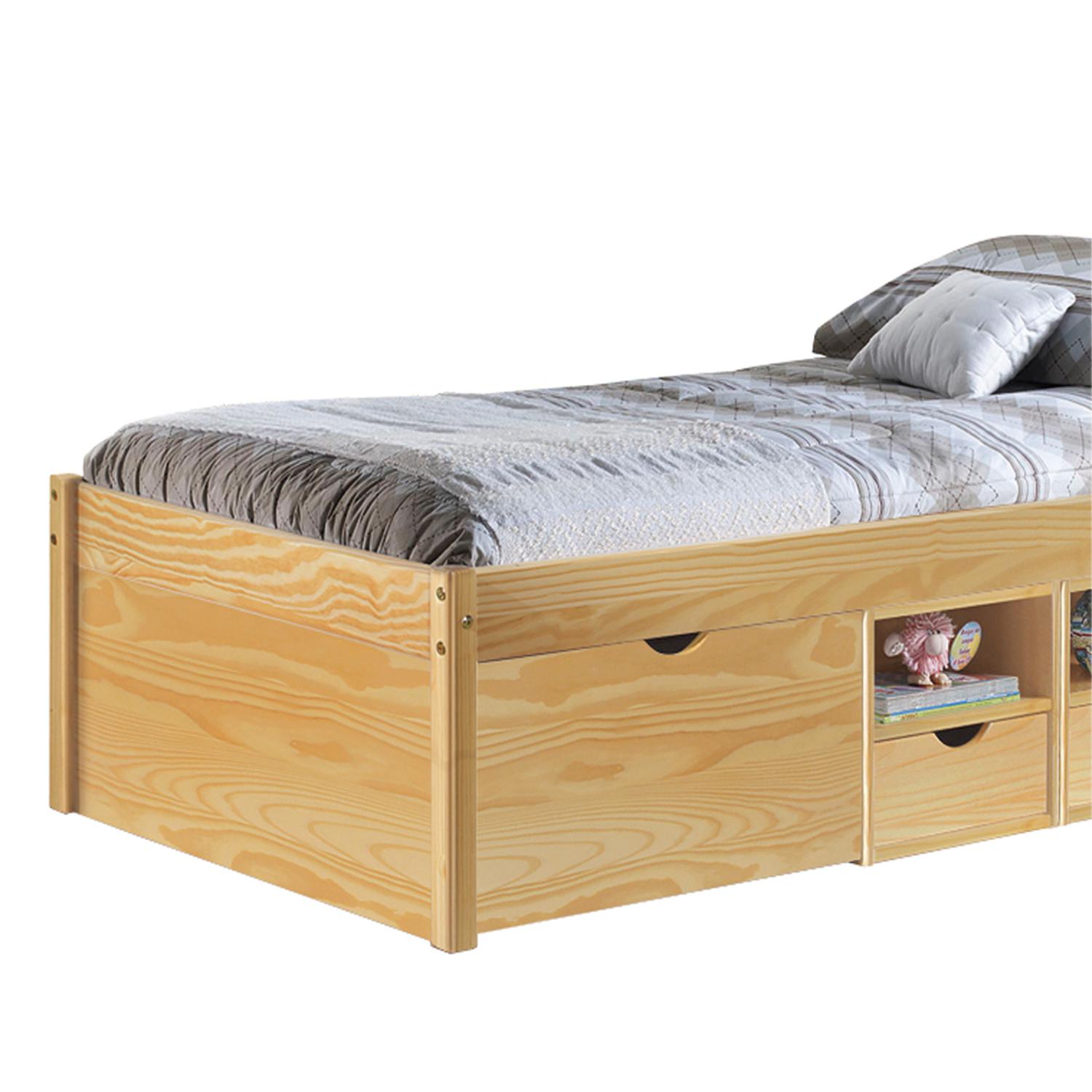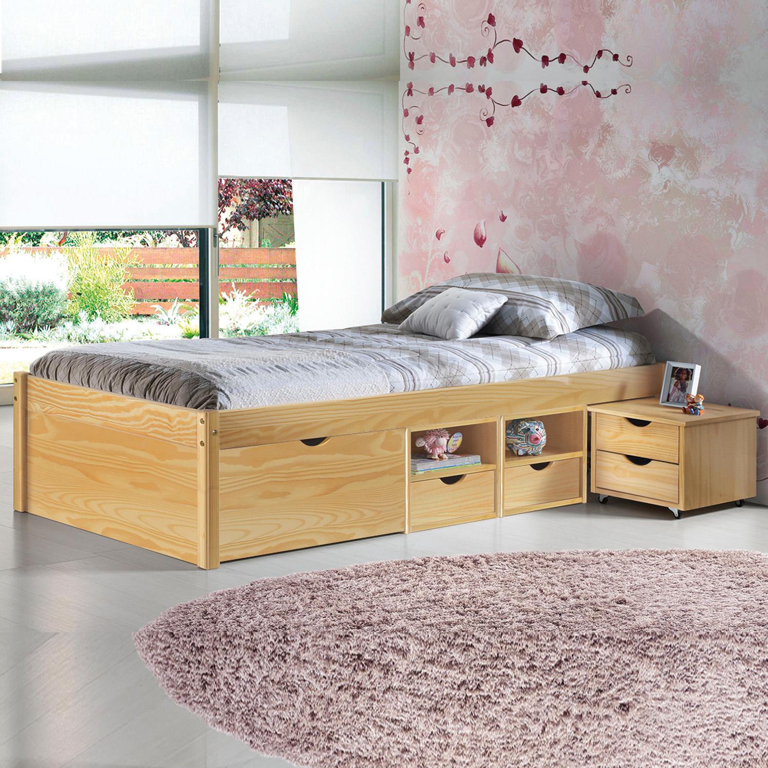 Pevné lôžko s prakticky riešeným úložným priestorom je skvelým riešením do študentských bytov, detských izbičiek i menších spální. Multifunkčná posteľ CLAAS 90 × 200 cm v prevedení masív borovica splní všetky vaše predstavy o pohodlnom a pritom praktickom lôžku. Nielenže je vďaka použitému drevu celkom kvalitné, takže vám dopraje plnohodnotný spánok, ale množstvo zásuviek a krásny výsuvný stolík umiestnený po boku lôžka budete zbožňovať. Veľká zásuvka poslúži na uloženie prikrývky a vankúša, menšia na umiestnenie drobností, ako sú knihy, hračky či posteľná bielizeň. Poličky nad zásuvkami je možné ozdobiť podľa svojho gusta a dať tak posteli vami požadovaný vzhľad, vložiť je možné knižky, dekorácie či farebné krabice a boxy. Nočný stolík je možné nechať schovaný a večer ho vytiahnuť k obľúbenému čítaniu či odloženiu mobilného telefónu. Multifunkčná posteľ bude vždy vďaka zásuvkám perfektne uprataná a izba tak získa upravený vzhľad ako z katalógu.